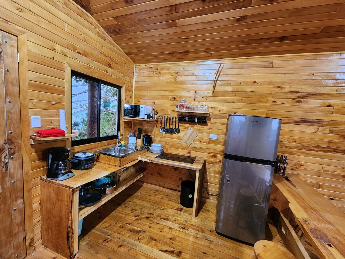 Sin duda de las opciones mas exclusivas y elegantes que encontraras en la zona. Te sorprenderán los más finos detalles y acabados que hacen que la experiencia sea única y acogedora. Una cabaña de madera con su propia chimenea en medio de la montaña con todo el confort que estas buscando. Tiene capacidad para 5 personas, adaptable a 8. A tan solo 50 mins de Cartago Centro, con un acceso para vehículos de todo tipo.