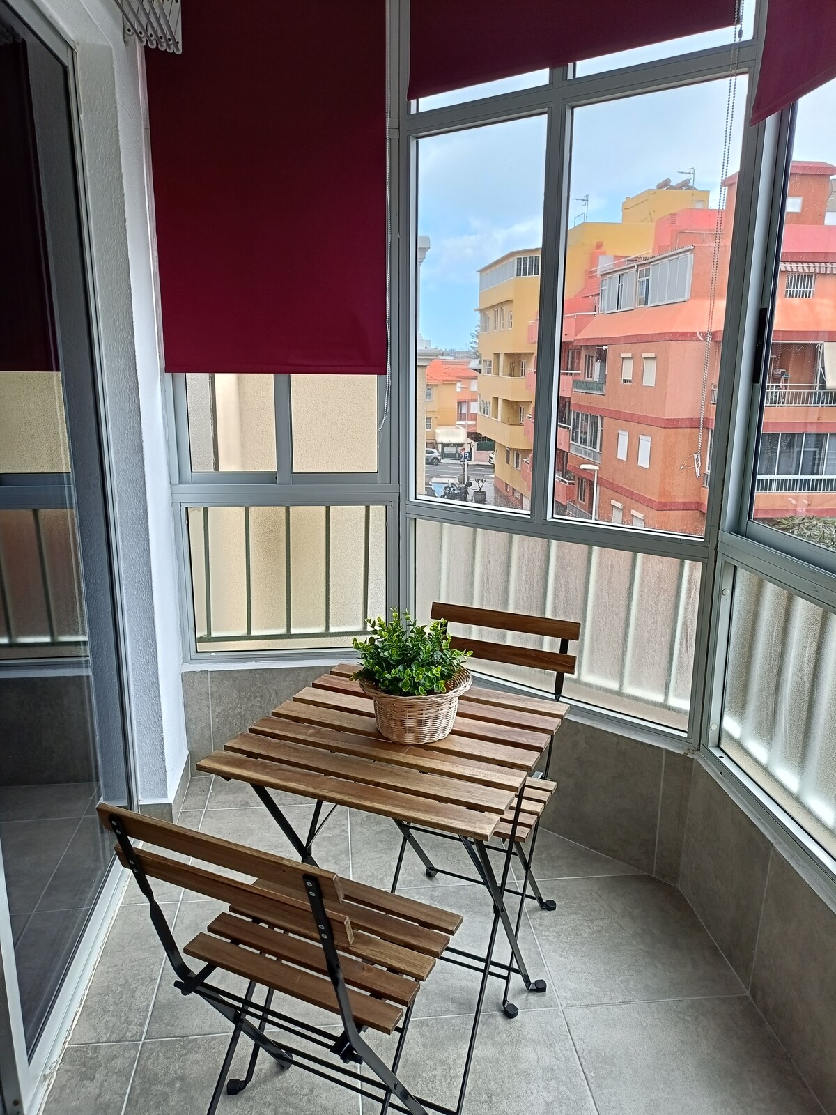 Apartamento muy luminoso entre Playa Chica y Playa del Cabezo. 5 min. a pie de las playas y a 7 min. del centro. Restaurantes, supermercados, tiendas, farmacia... Parking gratuito en las calles alrededor y frente al edificio. Balcón y ventana del dormitorio con vistas laterales a la playa del Cabezo y frontales al pico del Teide. Cama de matrimonio y sofá cama en el salón. Cocina nueva y totalmente equipada. Edificio muy tranquilo y sin ruido. N° licencia CCAA: VV3841999