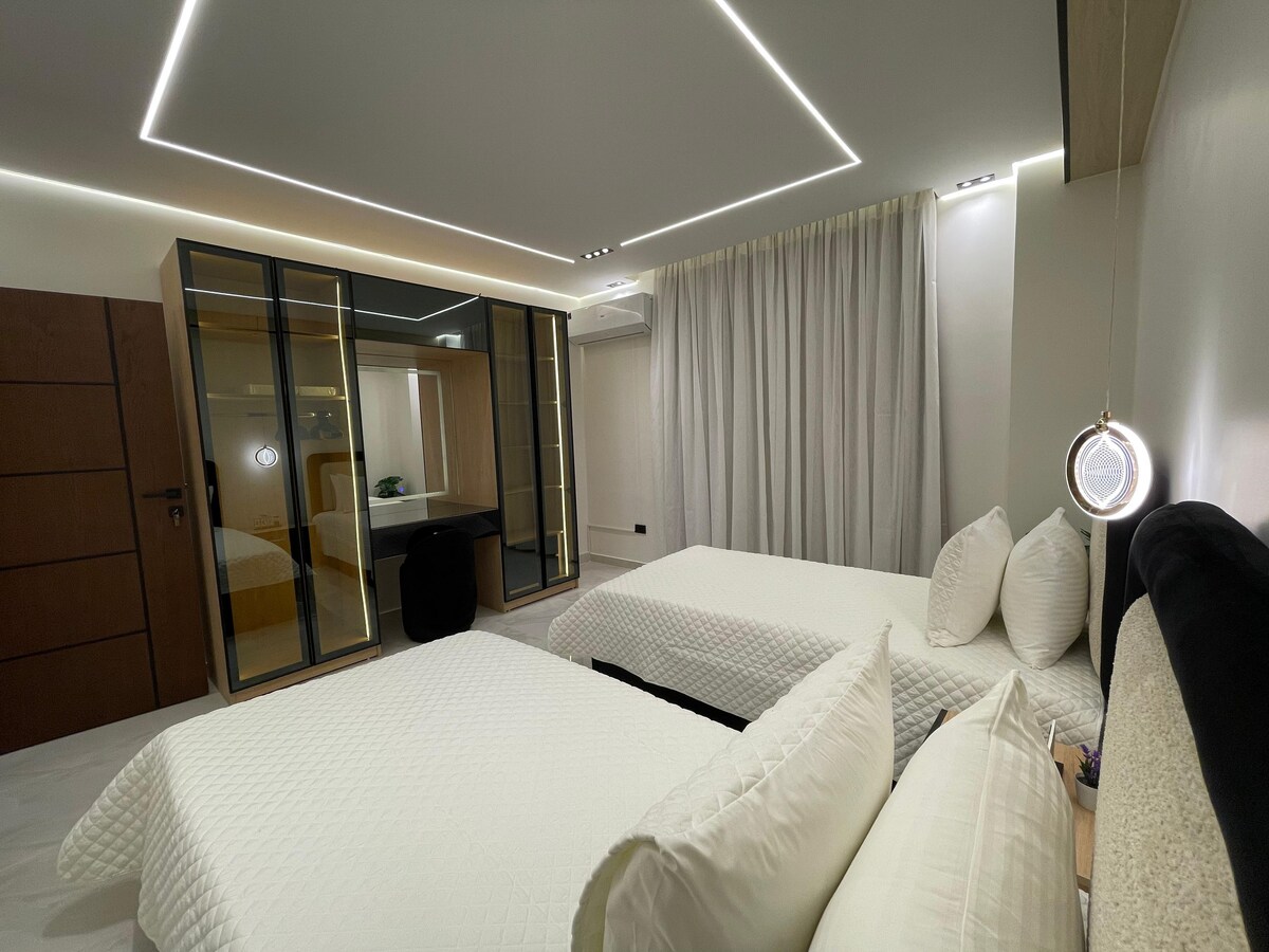 🏡 Apartamento de lujo en tránsito Un apartamento espacioso y totalmente amueblado con muebles modernos. Dos dormitorios tienen un cómodo hotel, un moderno salón con TV inteligente y wifi, y una cocina totalmente equipada. 🛁 Un lujoso baño con jabón, champú y una consulta gratuita para todos los huéspedes. Situado en el 3er piso (sin ascensor), con una ubicación privilegiada en una zona recreativa, cerca de Carrefour Transit y el aeropuerto. ✅ Servicios destacados: • Aire acondicionado • Limpieza gratuita para estancias largas • Apagón eléctrico: iluminación automática • Disponibilidad de transporte especial bajo petición. Ideal para familias y jóvenes, mejor que los hoteles de lujo ✨