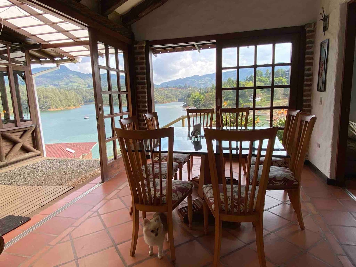 Una de las mejores casas de Guatape y a solo 10 minutos de la ciudad. La casa grande y la casita tienen capacidad para 16 personas en 7 dormitorios con 8 baños. El nuevo jacuzzi tiene vistas al lago, mientras que una cocina de calidad de chef y muebles a medida completan el espacio diseñado por el arquitecto. Terminada en 2020 con sofás, camas y una cocina de chef hechos a medida de alta calidad. El techo de triple altura, el puente y la escalera tienen vistas increíbles al lago. Los huéspedes tendrán a su disposición 4 acres junto al lago.