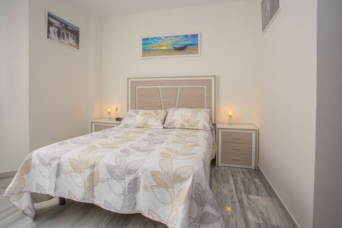Piso de diseño recién reformado con altas calidades. Gran salón con cocina incorporada (30 m2) con sofá cama de matrimonio y con terraza. 2 habitaciones: una con cama de matrimonio y otra con cama nido de matrimonio. Aire acondicionado por conductos en todas las estancias y wifi. Zona comunitaria con preciosos jardines, 4 piscinas (en temporada de verano) y aparcamiento en superficie. A 5 min andando de la playa de El Ancla. Cerca de bares, restaurantes y servicios. Zona muy tranquila.