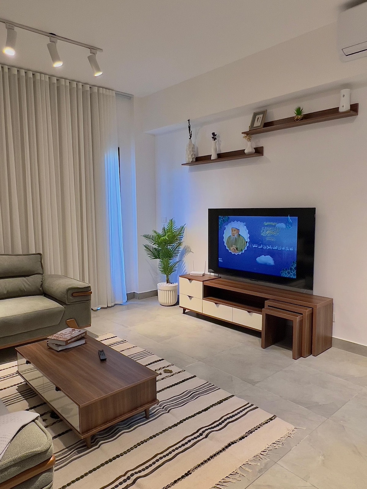 Relájate con toda la familia en este tranquilo alojamiento. Todo el contenido del apartamento y los electrodomésticos están en excelentes condiciones. جميع الاجهزة والمفروشات والاثاث بحالة ممتازة ، كل شيء جديد