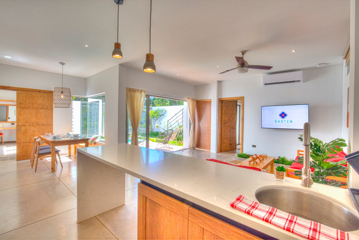 Abre las puertas de las ventanas del suelo al techo y salta directamente desde el dormitorio principal a tu piscina privada. Relájate en nuestros sofás hechos a mano y pide a un encargado de Garten que te prepare batidos por la tarde. Coge tus tablas de surf del área de almacenamiento en el jardín privado y monta con nuestros selectos entrenadores hasta uno de los famosos descansos de la zona. Las villas familiares combinan el servicio y las experiencias que ofrecemos en el hotel con un toque adicional de privacidad y tranquilidad. La opción de residencia de villa familiar es la escapada perfecta para familias y pequeños grupos de amigos que quieren una escapada de vacaciones coordinada. Las villas tienen capacidad para hasta 6 huéspedes e incluyen un salón en la azotea, cocina americana, zona de jardín y piscina privada. Los huéspedes de la villa también tienen acceso gratuito al club de playa y programación prioritaria con Sunrise Spa.