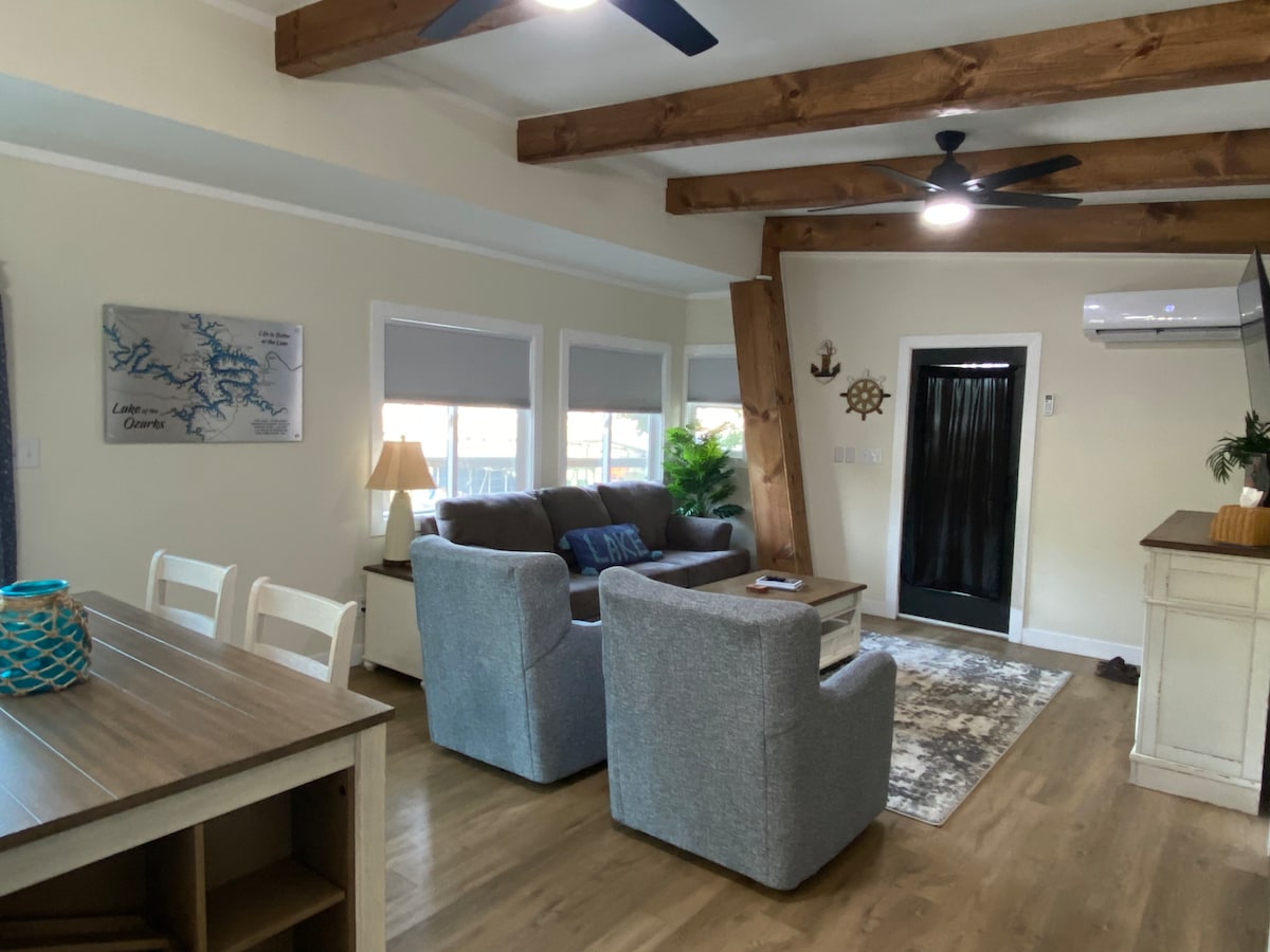 Let our treehouse style villa nestled in a quite cove of off MM17 help you relax and enjoy the beauty of Lake of the Ozarks. A short drive to everything Osage Beach has to offer, yet far enough away to allow you that time to connect with family & friends. You'll feel right at home in our newly renovated and well stocked kitchen. We love the open layout that the unique design of the villa provides. Make this your Lake of the Ozarks vacation home for many years to come.