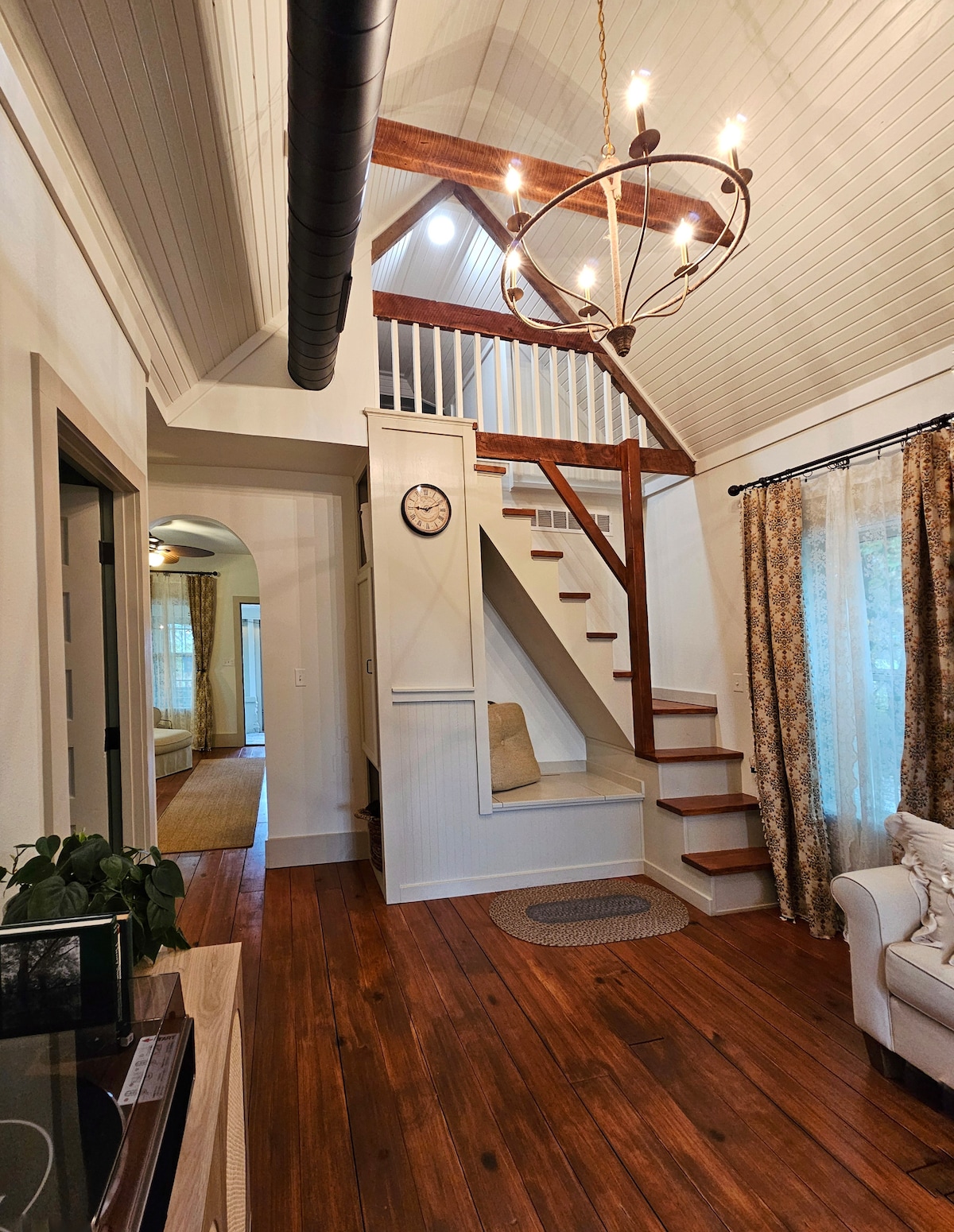 The Lower Deck at Wet Feet Retreat is a private, lakefront lower-level apartment available only during the off-season. Ideal for a quiet getaway or short-term stay, it features a queen bedroom, smart TVs, high-speed internet, a cozy living and dining area, and a kitchenette with sink, compact fridge, microwave, air fryer, and induction burner. Includes private laundry, stand-up shower, free parking, dock access, kayaks, and a private patio with fire pit. Shared HVAC set at 70°.