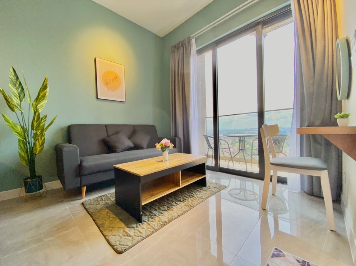 ¡Disfruta de una estancia acogedora en nuestro moderno estudio en Silverscape Residence, Melaka, perfecto para dos! Disfruta de las vistas al paisaje urbano desde el balcón de gran altura. El estudio está totalmente amueblado con una cómoda cama tamaño queen, cocina americana, wifi y TV Box con películas ilimitadas. Situado cerca de atracciones vibrantes, tiendas y restaurantes, es el punto de partida perfecto para explorar Melaka. Los huéspedes también tienen acceso a una piscina infinita y seguridad las 24 horas. ¡Ideal para parejas o personas que viajan solas!