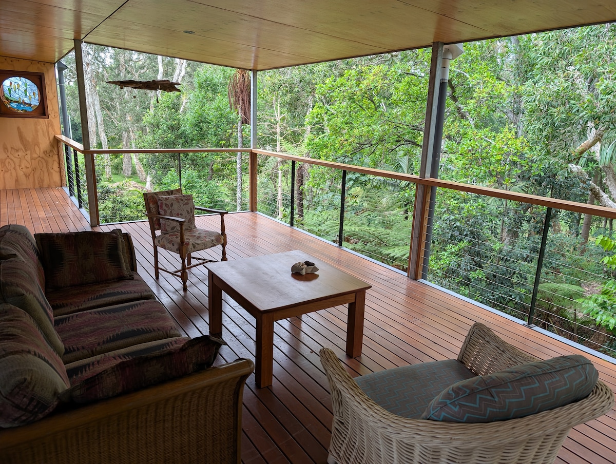 Welcome to Sandy's Getaway! IMPORTANT Please Note: To save our guests money this listing only includes the master bedroom with ocean views and upstairs bathroom. If you require the other rooms please book through my other listing. Our lovely beach house is perfect for a couple for a holiday or a quiet retreat. The location is incredible with 180 degree views of beautiful and unspoilt Sandy Beach and a one minute walk to the surf. We do allow small non shedding dogs.