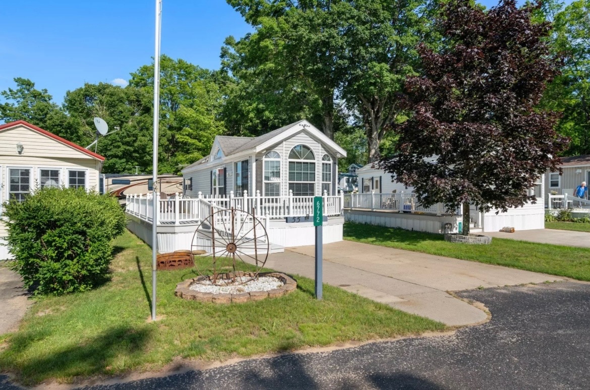 LOCATION! LOCATION! Enjoy a bigger, more private lot in the resort campground with one bedroom, one full bath, kitchen and living room. Large deck, firepit and short walk to trails and outdoor pool/clubhouse. ROOM ENOUGH FOR TWO - 25 minutes south of Mackinaw City and 15 minutes north of Petoskey. Close to Indian River. Two minutes to small town of Alanson, bike path, laundromat, bakery, Marathon gas, grocery, and restaurants.