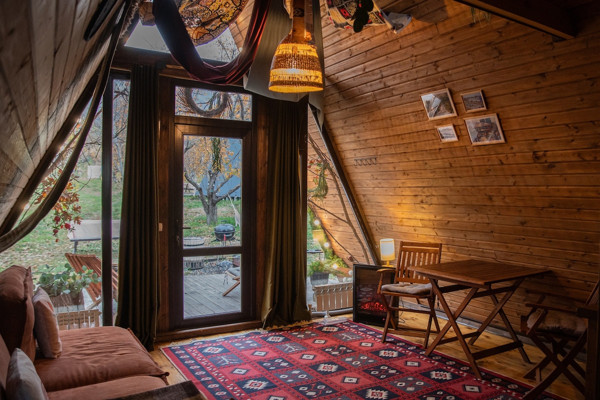 A-frame Santal es un nuevo proyecto de los propietarios de la Dikaya Soap Farm. Todos los detalles interiores fueron diseñados y elaborados por artesanos locales de la madera. La casa está llena de aromas de hierbas locales y sándalo. Tus anfitriones, Olya y Slava, hacen jabón natural aquí, y en la granja se cultivan, clasifican y secan una gran variedad de hierbas. A menudo, conocerás a viajeros y voluntarios de todo el mundo. Es el lugar ideal para pasar un fin de semana acogedor y tranquilo lejos del ruido de la ciudad.