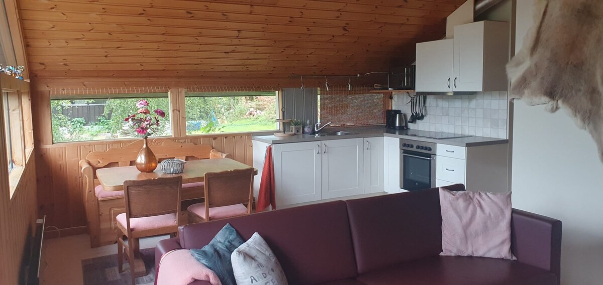 Nueva casa de huéspedes en total 54 metros cuadrados construida en laft y materiales reutilizables. Lugar perfecto para disfrutar de paz y tranquilidad, o como punto de partida para grandes excursiones, independientemente de la temporada. A 7 minutos del campo de golf más bonito de Noruega y a la misma distancia de Aurdalsåsen, con estaciones de esquí y fantásticas pistas de esquí. Una hora desde Jotunheimen con 255 de los 300 picos montañosos de Noruega de más de 2000 metros. Y si quieres la vida urbana, está a quince minutos en coche del encantador pueblo de Fagernes. Tienda, restaurante y panadería a poca distancia a pie.