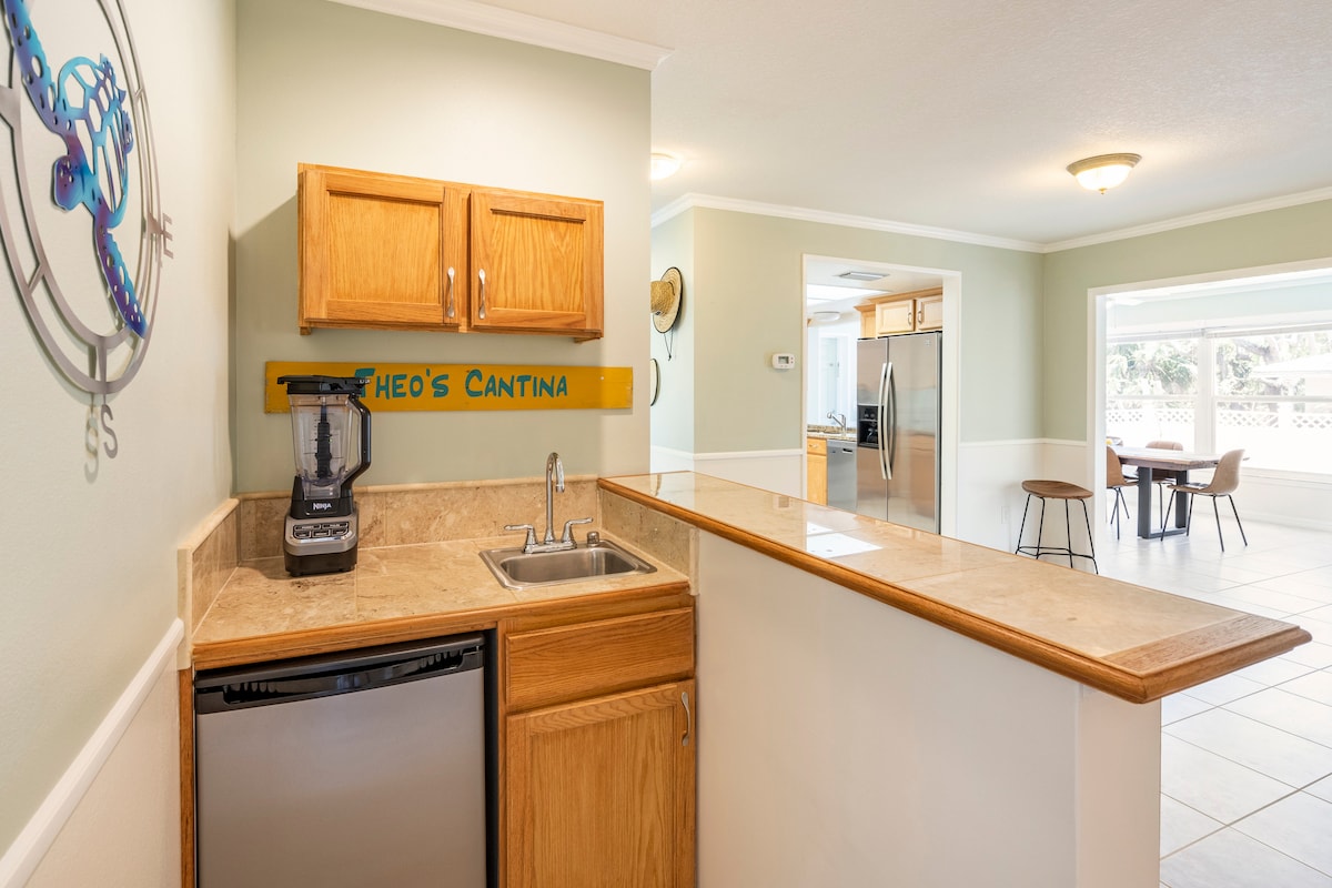 Private Heated Pool + Swim-Up Bar • Mins to Beach