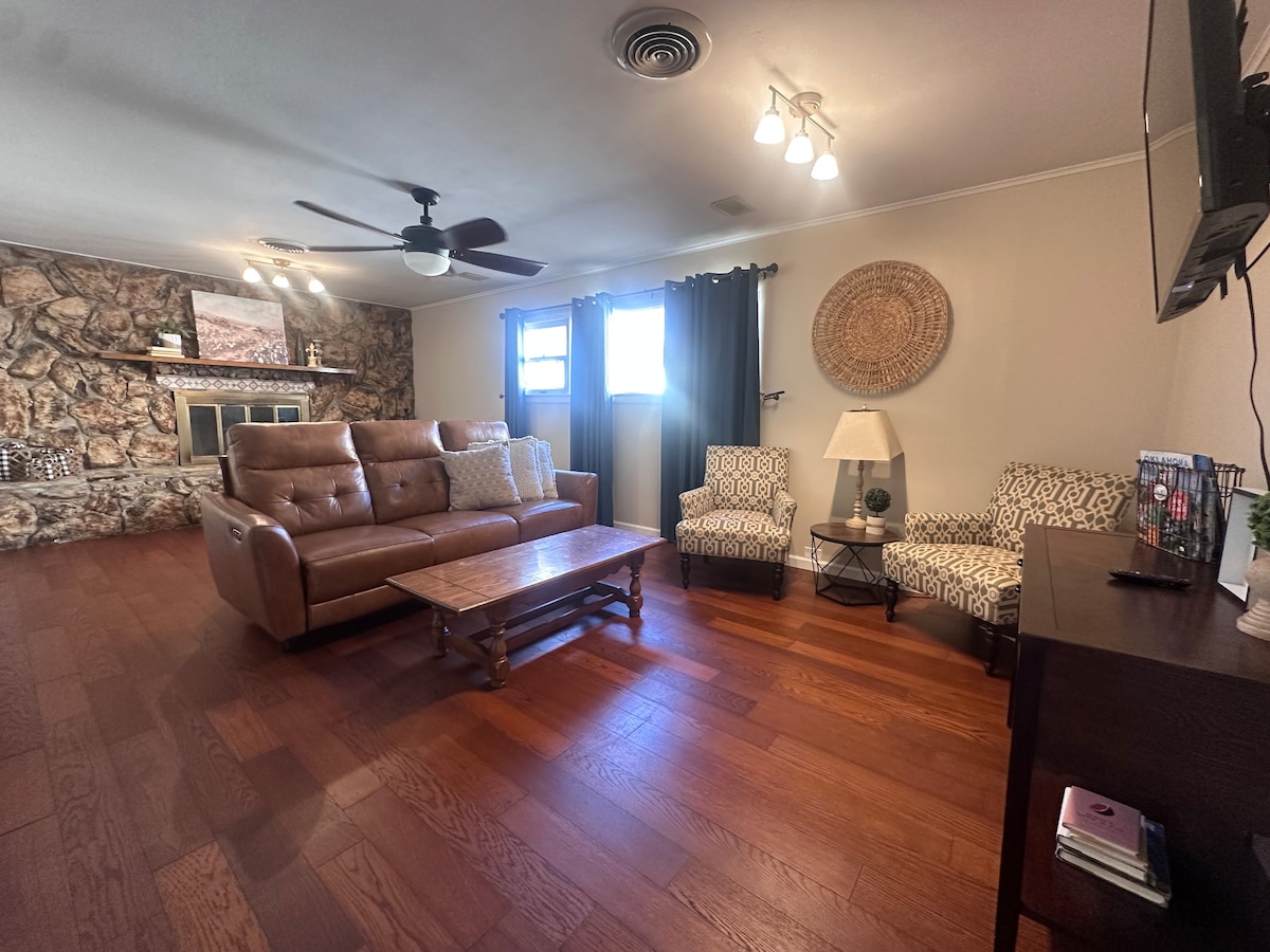 En este alojamiento se respira tranquilidad: ¡relájate con toda la familia! Casa completamente remodelada con todas las comodidades que esperarías y algunos extras únicos. En su mayoría, electrodomésticos nuevos, calefacción y aire acondicionado centrales nuevos. A 3,5 minutos del centro de la ciudad, del Centro de Eventos Stride y del estadio David Allen Ballpark. A solo 3 minutos del Centro de Exposiciones Chisholm Trail.