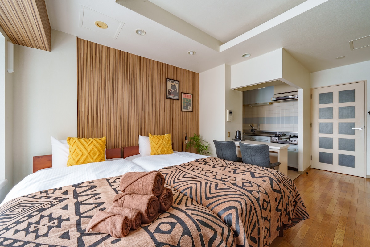 Marca 2023|2 camas dobles + sofá cama individual Comfort 1LDK 44 ㎡|Máx. 5 huéspedes