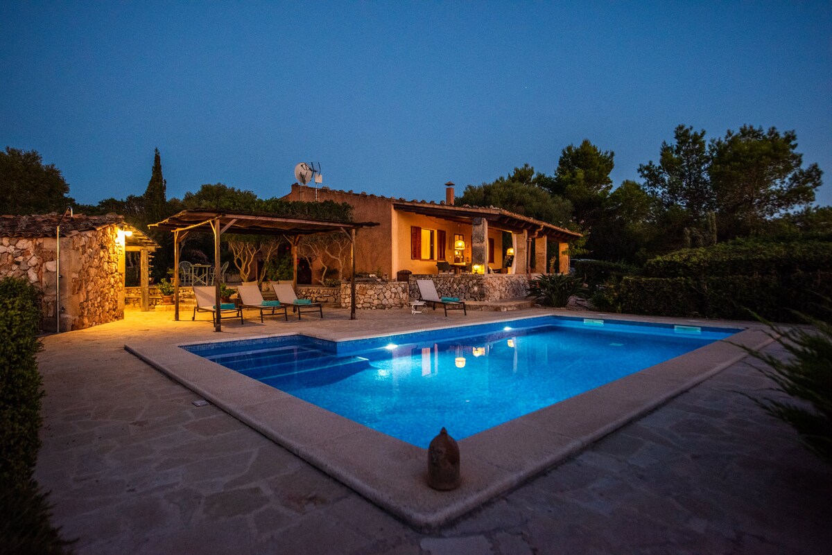 Espacioso chalet ubicado en pleno campo, en una zona exclusiva y tranquila con vistas despejadas y piscina privada con barbacoa, en las afueras de Santanyí. Cerca a las mejores playas de la isla ( Es trenc, Cala Llombards, Es caló des Moro, S'almonia), a 5km de Santanyi y a unos 40 km de Palma de Mallorca. Disfruta de una estancia , ideal para reuniones familiares, tus hijos pueden disfrutar de la naturaleza y los animales; con amigos; o sorprende a tu pareja con unos días de desconexión.