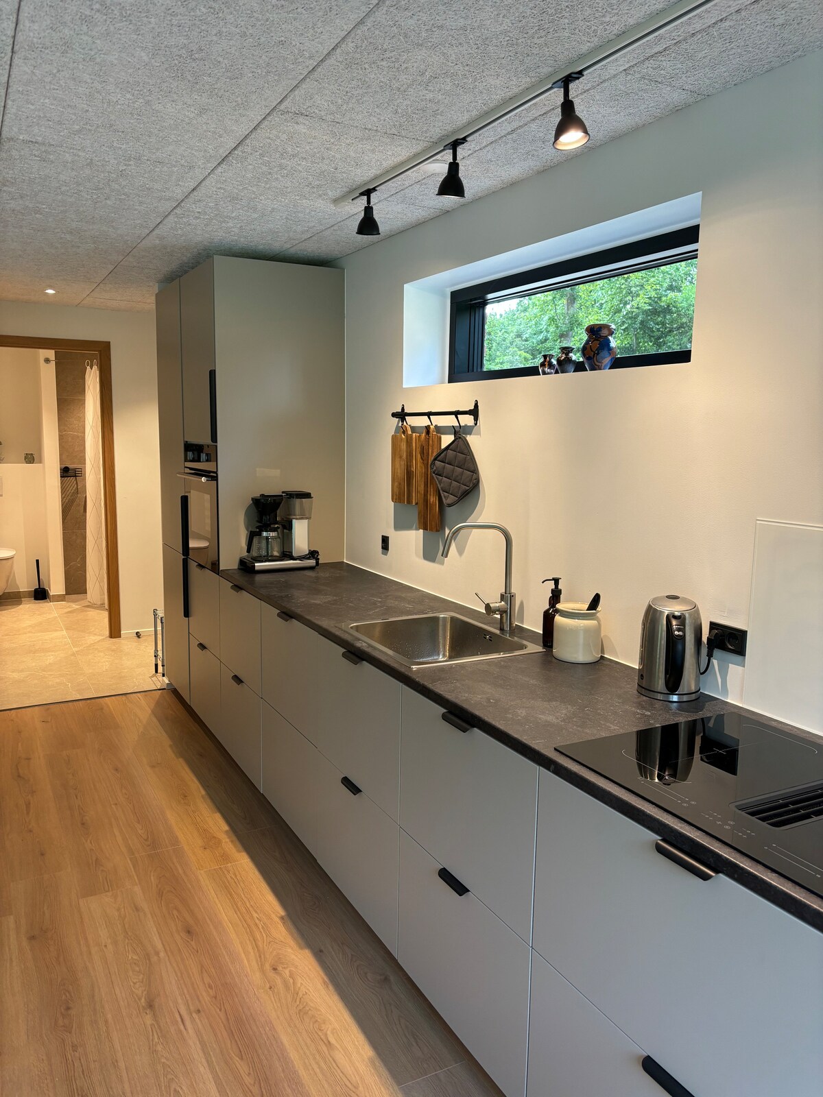 Alquilamos el anexo de nuestro jardín trasero, que tendrás completamente para ti. 3-4 camas. Cocina privada totalmente equipada con microondas, nevera, etc. Café y té disponibles. Baño con bañera, ducha. Sala de estar con un sofá cama de 150 x 200 cm. Mesa de centro, escritorio para trabajar y televisión. Dormitorio con una cama de 140 x 200 cm. Ropa de cama, toallas y limpieza incluidos. Internet WiFi. Plaza de aparcamiento delante del garaje o en la calle, Cerca de la playa, tiendas y parada de autobús,
