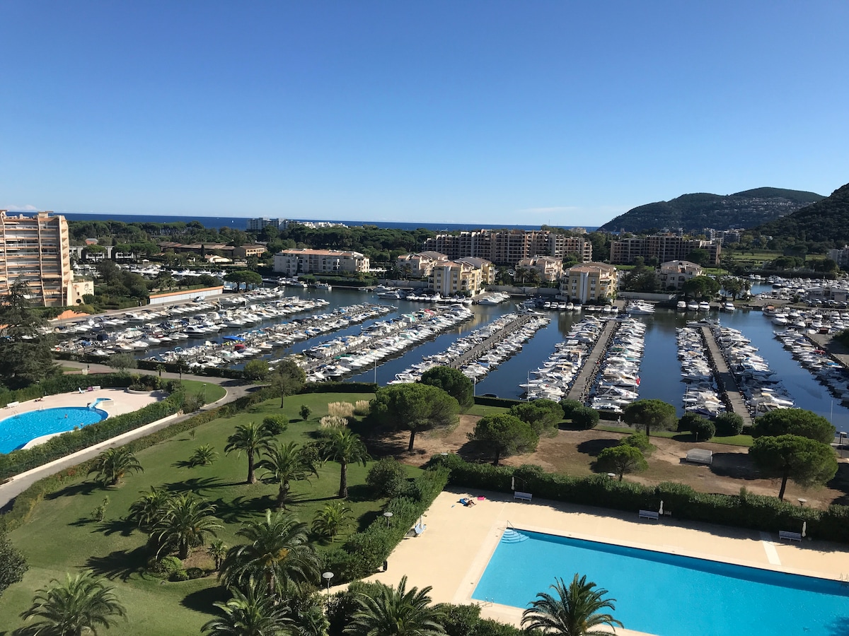 Détendez-vous dans ce logement unique et tranquille. Dans résidence privée, sécurisée avec régisseur, studio 28m2 entièrement rénové expo sud, 9ème étage, vue imprenable sur mer et port comprenant entrée, salle d'eau avec WC, coin lit 140, séjour, canapé lit, cuisine fermée entièrement équipée, balcon, ascenseur, parking, piscine privée, 10 min à pied des plages. Commerces et transports en commun à proximité immédiate.