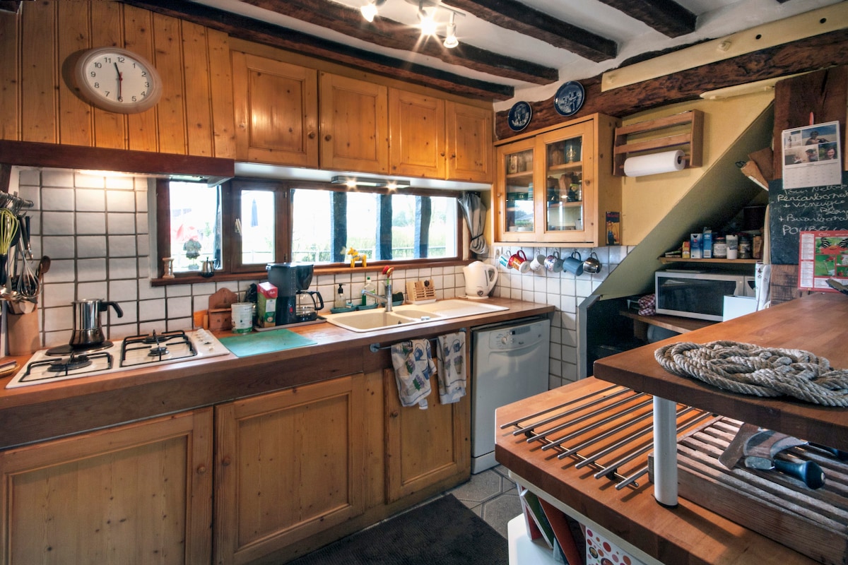 Encantador horno de pan antiguo con entramado de madera, situado a orillas del arroyo, consta de: - Sala de estar con estufa de leña, - Cocina, - En la planta superior: -cuarto de ducha/WC accesible por una escalera de molinero (ver fotos), -habitación con una cama de 160x200 con vistas al arroyo, accesible por una escalera de molinero (ver fotos), El dormitorio y el baño no están comunicados. Muebles de jardín, barbacoa, aparcamiento privado, leña incluida Nota otra casa, la Casa de piedra, está a 100 m