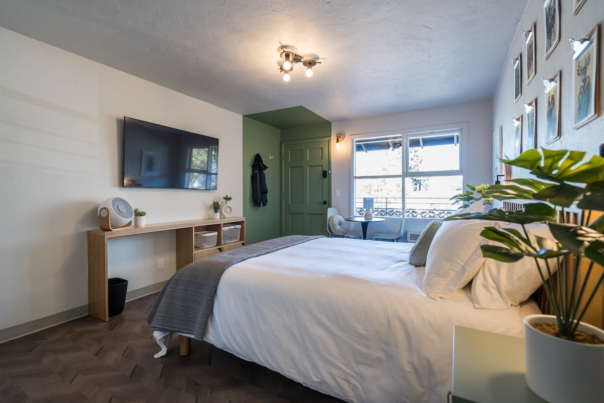 ¡Motel boutique recién reformado con estilo y encanto! Muy cerca de todas las cosas buenas y lugares de interés locales. A pocos pasos de buena comida, vida nocturna, tiendas y a minutos de Hayward + Universidad de Oregón. Incluye aparcamiento gratuito, wifi, transmisión HD, mininevera con congelador, microondas, cafetera, artículos de tocador de lujo y un diseño cuidado. ¡Llegada y salida sin llave y sin contacto! Fácil acceso a la autopista y al centro de Eugene. Estarás justo en medio de todo. Propiedad, diseñada y operada por un residente local.