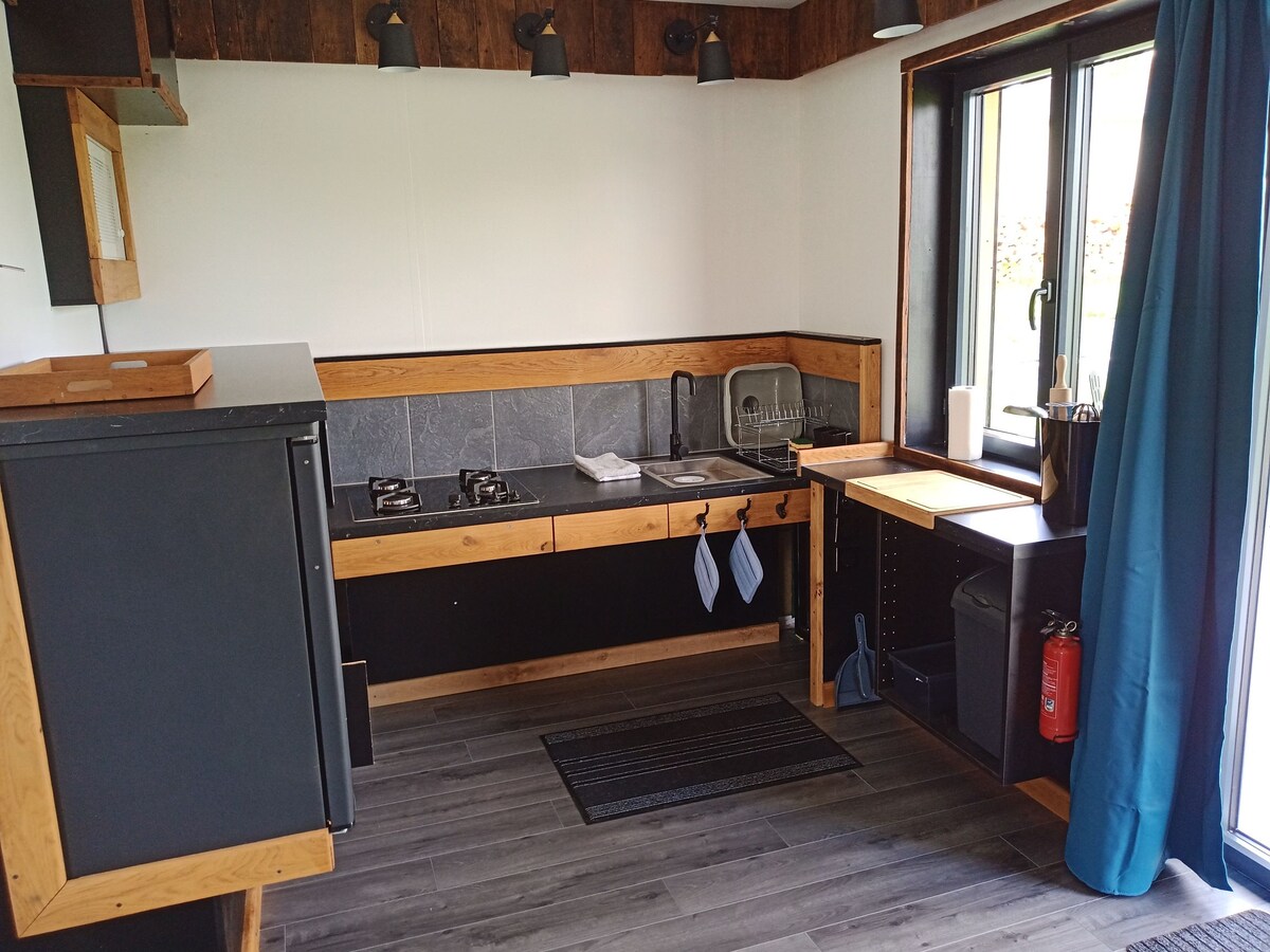 Bonita tiny house acogedora y cálida con su ambiente de cabaña en invierno decorado con sus bonitos cojines y su suave manta. Sus ventajas: Salida el domingo hasta las 15:00 - Colchón con memoria de última generación. - Inmersa en el recinto de los animales de la granja -jardín cerrado de 500 m2 muebles-barbacoa-ping-pong - Terraza de 18 M2 con vistas a la naturaleza -Accesos en el camino peatonal al pie de la vivienda -Acceso a la cuenca natural donde se puede: -Usted bañarse(Zapatillas de baño obligatorias