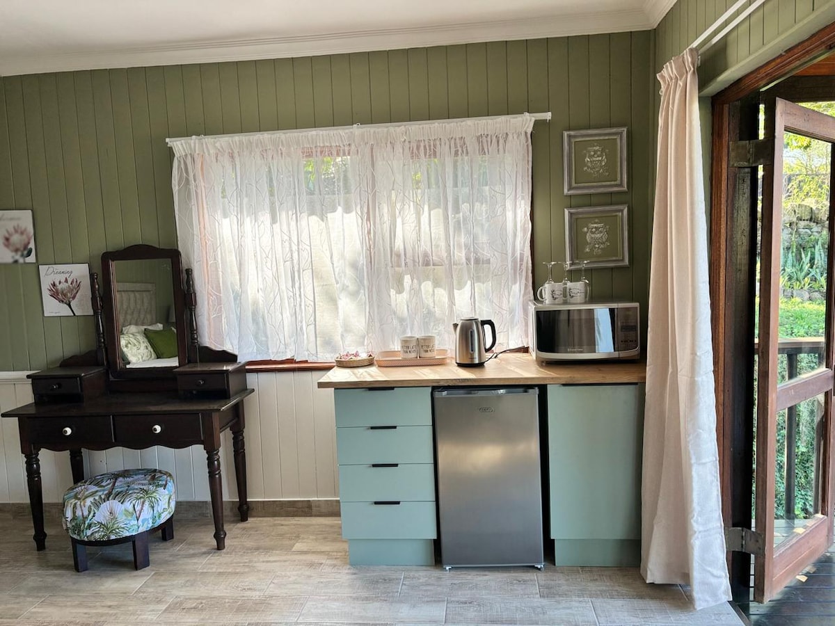 Amplia habitación privada con cama tamaño queen, baño en suite, armarios empotrados, TV UHD Samsung de 50 pulgadas, fibra sin tapar, escritorio para trabajar y minicocina con elementos básicos, microondas, nevera y hervidor de agua. Entorno tranquilo, exuberantes jardines con abundante vida de aves. Cerca de Hillcrest, Kloof, Assegai, Botha's Hill y cascada. Ideal para parejas, aventureros solitarios y viajeros de negocios. Generador para cuando hay reducción de carga y estacionamiento seguro en las instalaciones.