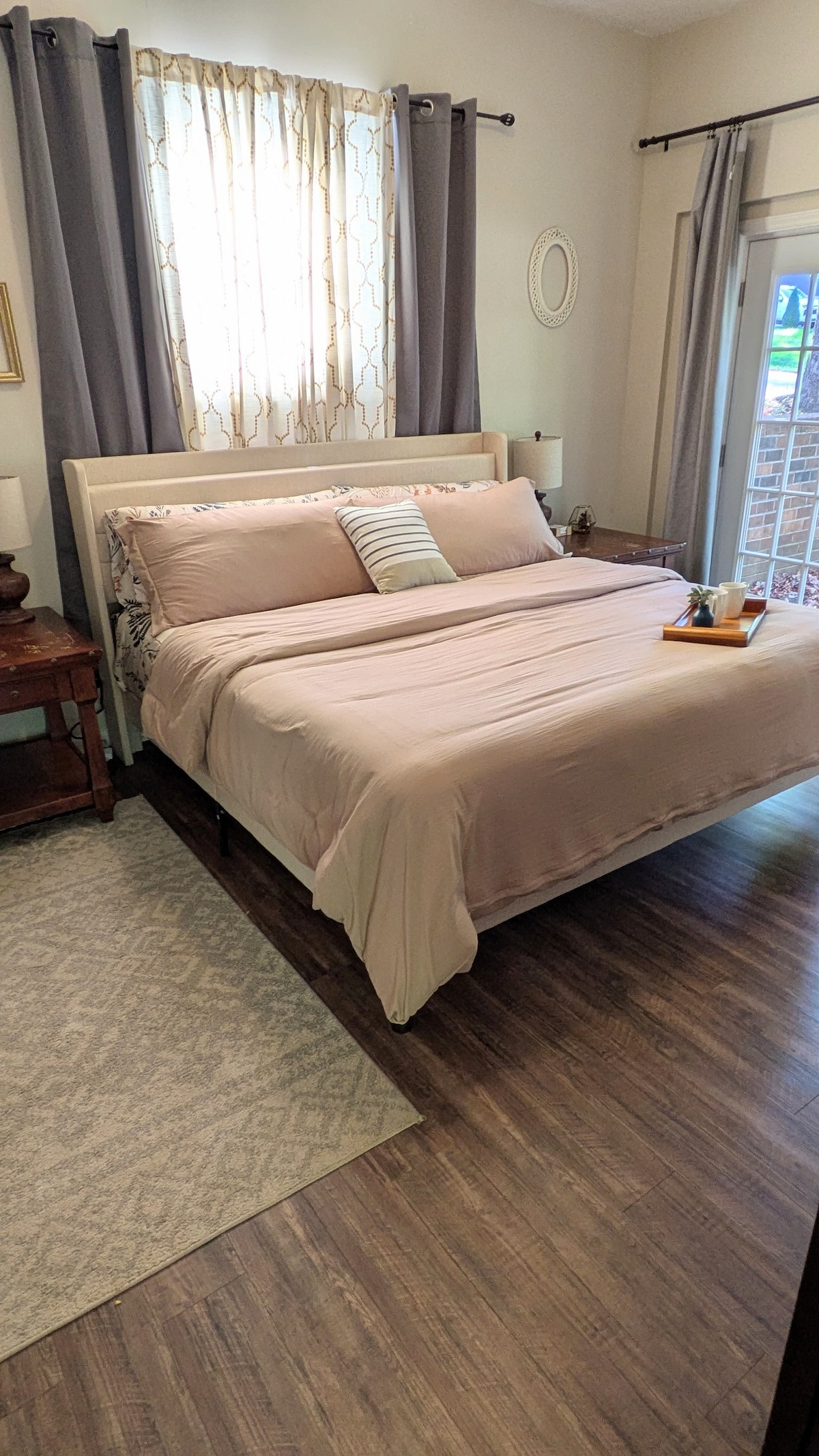 ¡A solo 10 minutos de Liberty University y a 20 minutos del centro de Lynchburg! Después de un día de aventuras, ¡ven a relajarte en nuestro acogedor bungaló! Con más de 800 pies cuadrados, esta unidad de sótano recientemente renovada es espaciosa, bonita, limpia y acogedora. Nos tomamos muy en serio el café, así que hemos equipado una gran cafetería. Prepárate una taza con nuestra Nespresso, o hazlo a la manera tradicional con una Chemex y granos molidos. Como cortesía, ofrecemos algunas opciones ligeras para el desayuno: paquetes de cereales y avena.