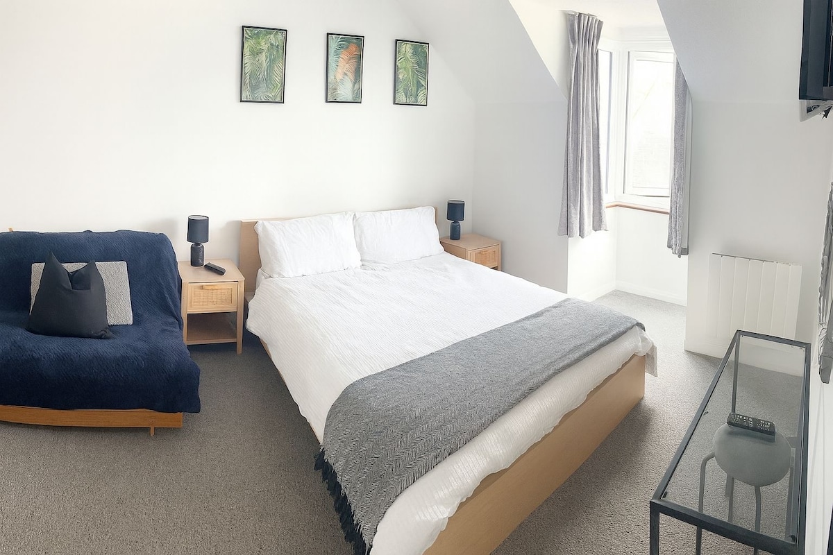 The Honey Bee, en Exmouth Devon Sin gastos de limpieza. Anexo privado, que consta de 3 habitaciones. Dormitorio/comedor, cama tamaño king o dos individuales, inodoro, ducha y cocina. Jardín delantero, aparcamiento privado gratuito. Disfruta del paquete de bienvenida con comida/bebida, etc. para empezar. A 1,8 millas de la playa, a 1,2 millas del centro de la ciudad, cerca de pubs, bares y restaurantes. Hay tanto que ver y hacer aquí. Realmente queremos que disfrutes de tu estancia y de todo lo que Exmouth y las áreas circundantes tienen para ofrecer.