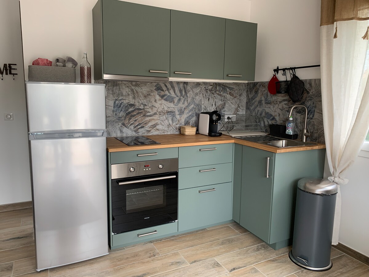 Apartamento independiente nuevo y muy bien equipado. Consta de salón comedor, dormitorio, baño, terraza grande y aparcamiento privado. Para su comodidad, dispone de lavadora, cafetera nespresso, horno real y placa de inducción, un gran frigorífico con congelador. La ropa de cama es nueva y de buena calidad. Para las familias, podemos proporcionar una cuna. El alojamiento está situado a 10 minutos a pie del centro de la ciudad