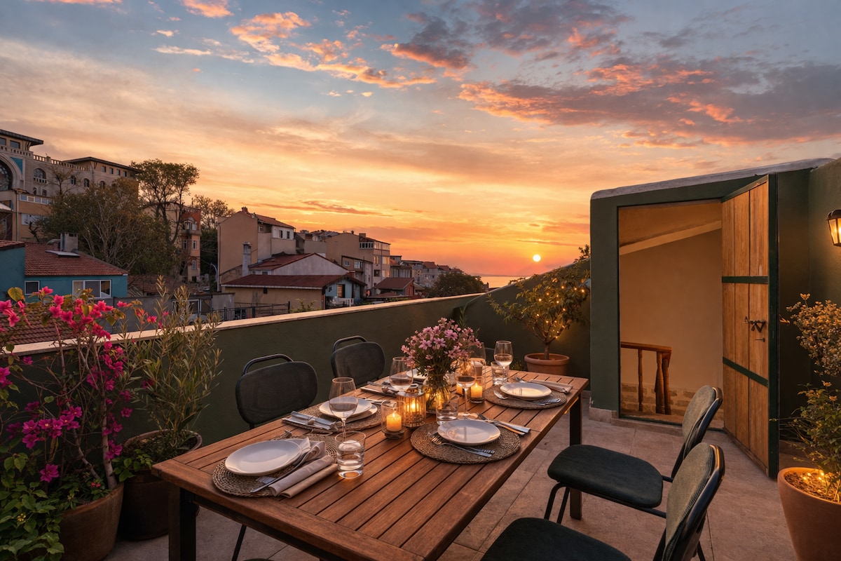 Disfruta del encanto místico de Balat, hogar de manantiales sagrados e iglesias antiguas. Nuestro apartamento cuenta con una terraza panorámica con impresionantes vistas de Estambul, incluida Santa Sofía, la Torre de Gálata y las murallas de Bizancio. A pocos pasos, descubre las aguas curativas de Blachernae Ayazma y otros santuarios bizantinos. A solo 30 segundos del mar, el tranvía y el ferry, nuestra ubicación ofrece tranquilidad, historia y acceso rápido a las principales atracciones en 5 minutos. Disfruta de la magia de este patrimonio único.