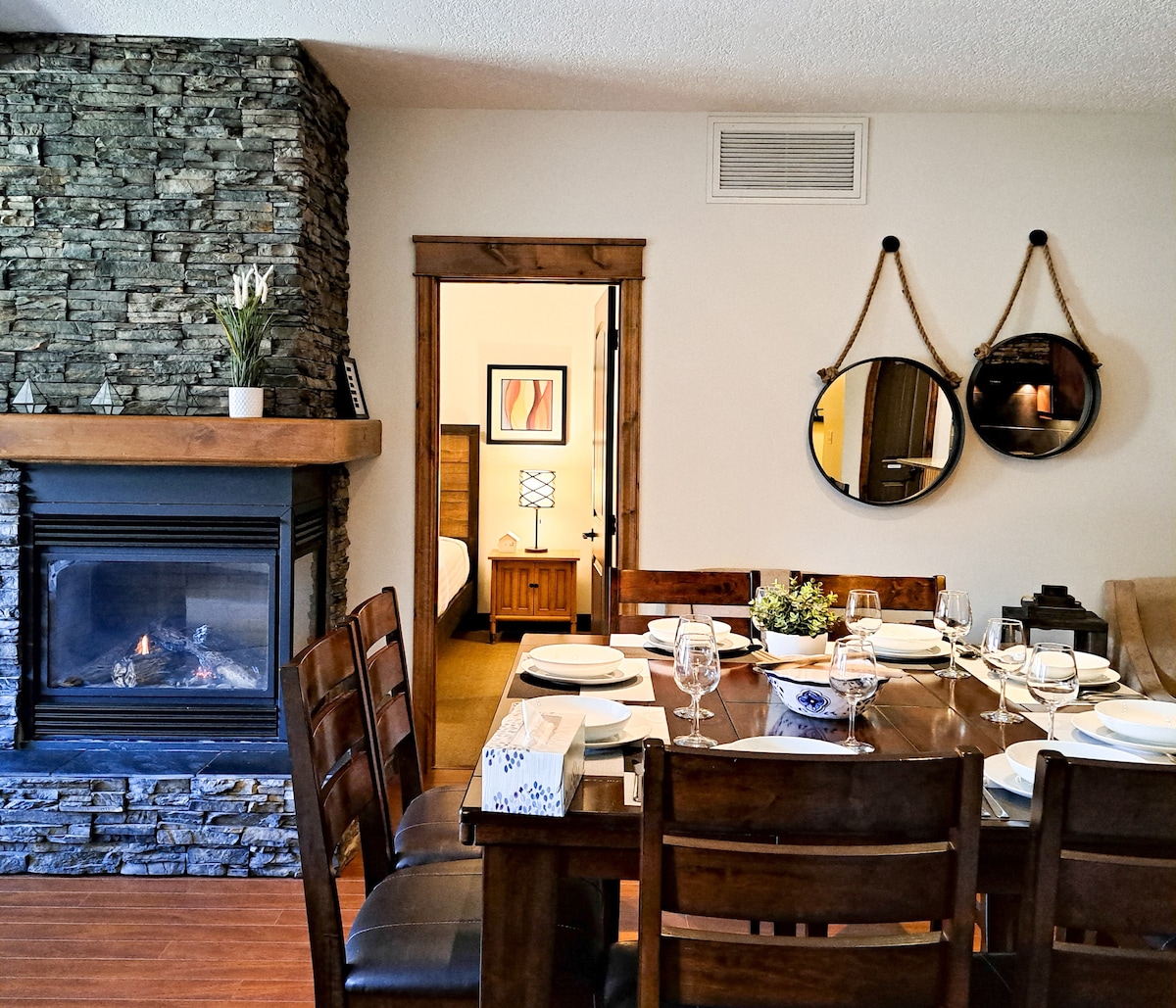 ¡Este apartamento tiene todo lo necesario para pasar un buen rato en Columbia Valley! Amplia cocina y sala de estar, 2 baños completos, patio con barbacoa, 2 dormitorios con cómodas camas tamaño queen y otro lugar en el sofá para una quinta persona. Disfrutarás de las modernas comodidades en nuestro espacio limpio y acogedor. A solo 1 minuto en coche del pueblo de Radium, a 5 minutos de las famosas piscinas de Radium Hot Springs y a 15 minutos de Invermere. Panorama Mountain Village está a 30 minutos en coche. ¡A solo 1,5 horas de Banff y del lago Louise!