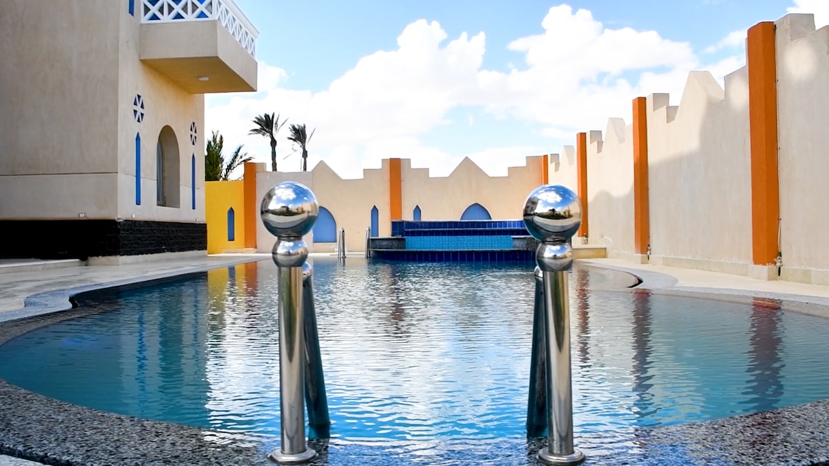 La escapada perfecta, a solo 140 km de El Cairo. Disfruta de esta villa privada, céntrica y soleada en el corazón del pueblo de Tunis, con un hermoso jardín con vistas al lago Qarun, donde podrás relajarte después de un largo día de explorar todas las experiencias auténticas que el pueblo de Tunis tiene para ofrecer. Estamos a poca distancia a pie de todos los lugares de interés famosos. A 2 minutos a pie de Lazib Inn. Nuestro enorme espacio incluye 4 dormitorios, 3 baños y 2 cocinas. La casa está dividida en dos plantas para mayor privacidad.