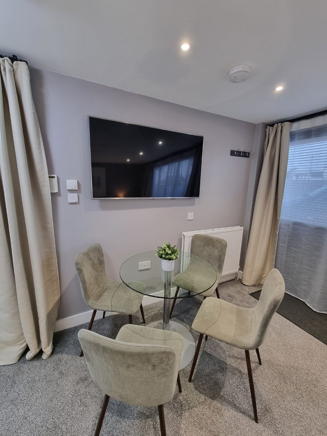 Apartamento 4, planta baja y a solo 5 minutos a pie de la Academia Marítima de Warsash. Se aplican tarifas de descuento por ocupación individual, semanal y mensual. Salón con escritorio, TV de pantalla plana, wifi gratuito, todas las facturas incluidas, baño con ducha, cocina totalmente equipada, lavadora, zona de patio de entrada propia y aparcamiento, en parcela segura, muy tranquilo, ideal para un descanso relajante o estudiar. Alojamiento de lujo con sábanas y toallas.