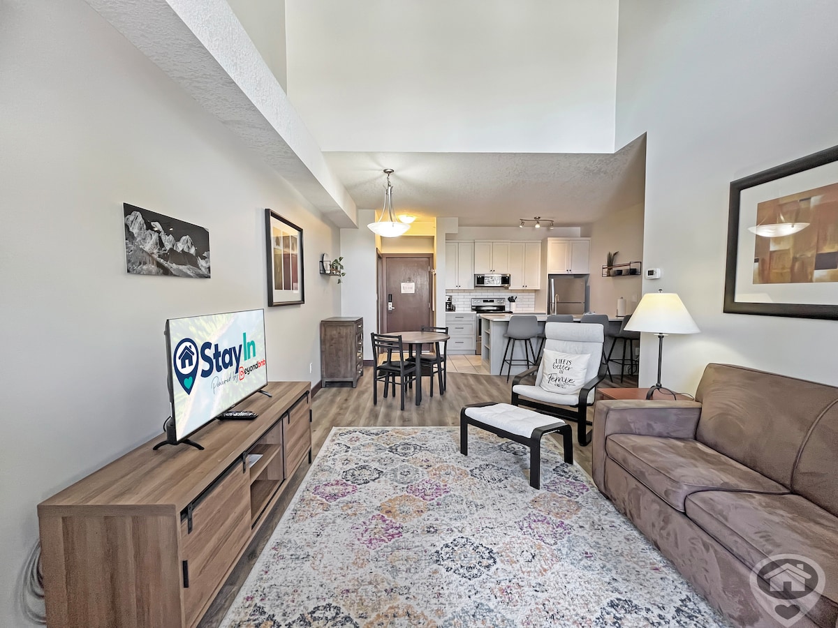 Diviértete con toda la familia en nuestra suite de un dormitorio en los condominios Silver Rock. La suite cuenta con cocina totalmente equipada, chimenea, bicicletas de crucero y acogedor patio con barbacoa. Una cama tamaño queen y un sofá cama completo con colchón de espuma viscoelástica. El servicio de Internet de alta velocidad es perfecto para trabajar a distancia. Netflix, Amazon Prime, Disney Plus, TV 4K de 55 pulgadas incluidos, además de la piscina en las instalaciones, la sala de vapor, la bañera de hidromasaje al aire libre y el gimnasio. Aparcamiento subterráneo climatizado gratuito con aparcamiento exterior adicional.
