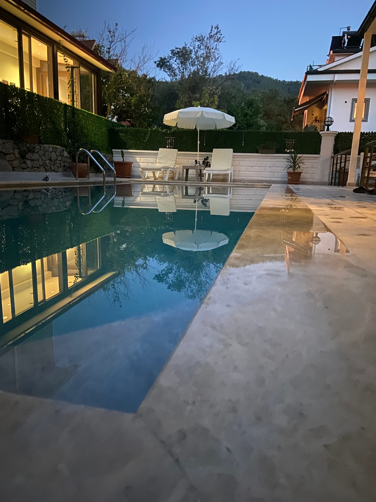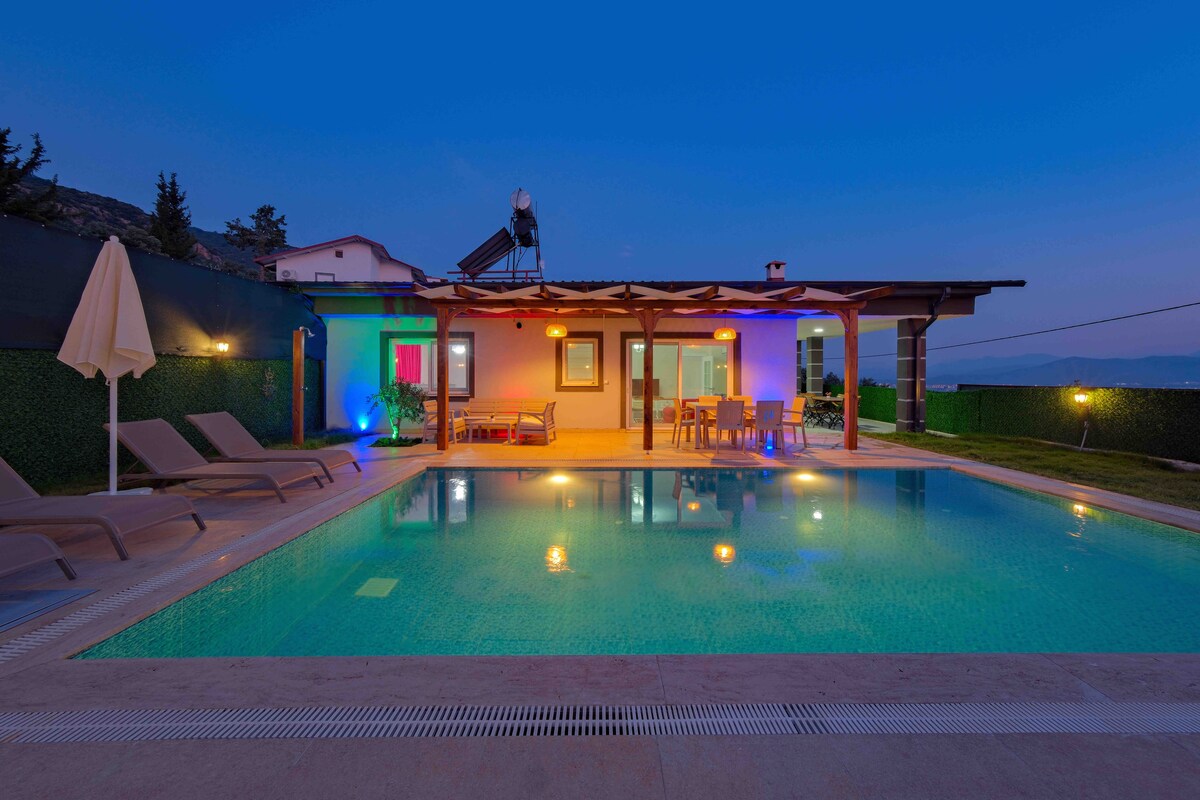 Puedes pasar unas vacaciones tranquilas en nuestra villa con piscina rodeada de vegetación junto al bosque. Nuestra villa en Fethiye Yeşilüzümlü es espaciosa y adecuada para familias y nuestros huéspedes especiales. Consta de tres habitaciones y un salón, y hay dos camas de matrimonio, dos camas individuales y dos sofás cama. El jardín y la barbacoa están disponibles. Nuestra villa está a 10 minutos del centro de Fethiye y a media hora(en coche), a 15 minutos de la playa de Calis (en coche) y a 15 minutos de la playa de Calis. Mascotas son bienvenidas.