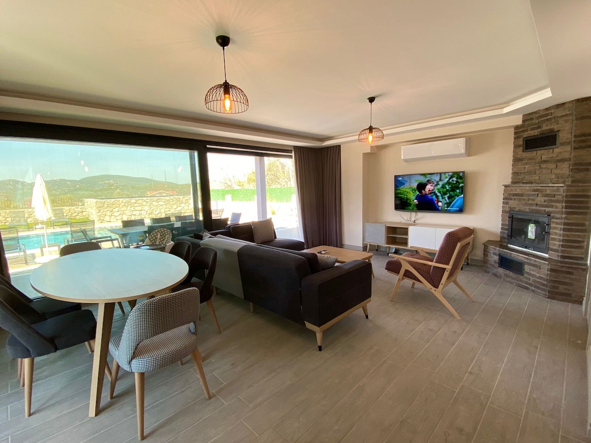 Nuestra villa de ultralujo con vistas a la naturaleza ofrece alojamiento para un máximo de 9 personas con privilegios como piscina cubierta climatizada, piscina al aire libre, cine, gimnasio, billar y ping-pong. Disfruta de la comodidad y el entretenimiento con el sistema de calefacción por suelo radiante, el aparcamiento interior y el parque infantil. Los huéspedes que deseen utilizar nuestra piscina cubierta deben avisarnos con al menos 4 días de anticipación. Hay una comisión por noche de 3000 TRY. El alojamiento permanecerá abierto durante todo el día.