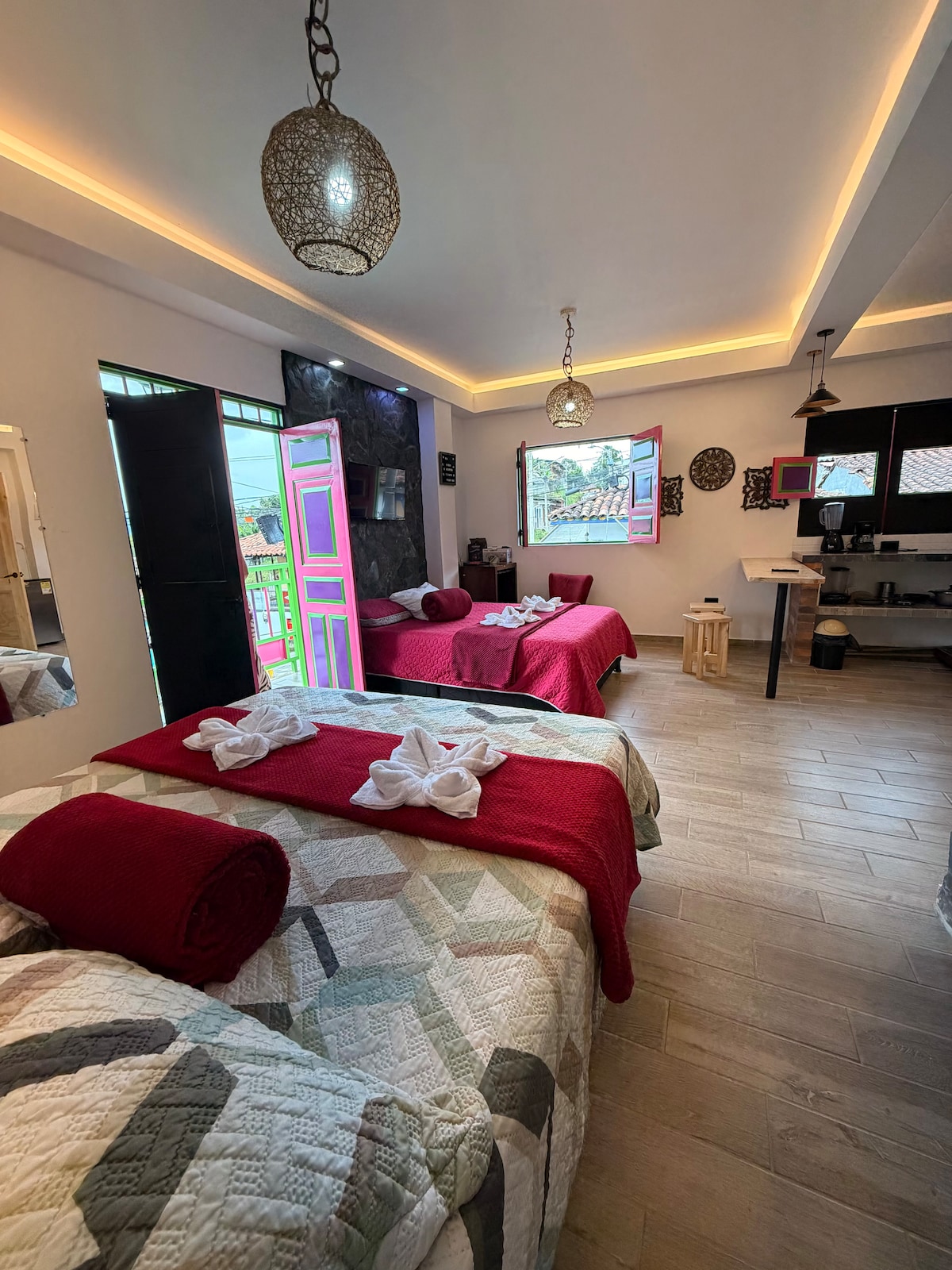 Disfruta de la sencillez de este alojamiento tranquilo y céntrico. Ubicado al frente del terminal de transporte, en una calle poco transitada por vehículos, está dentro del pueblo pero con una conexión con la naturaleza, tienes disponible tiendas, panaderías a una cuadra, la plaza principal está 5 cuadras dónde se encuentra la calle real, donde encontrarás las artesanías más hermosas de Colombia, restaurantes, cafés, repostería, etc