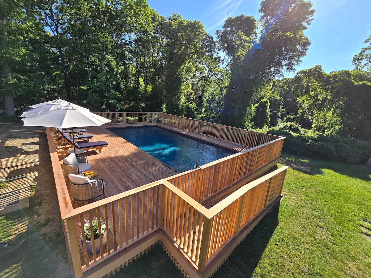 Un oasis tranquilo y bellamente ajardinado. Extensión de invitados de dos dormitorios privados recién construidos y un baño en la casa ocupada por el propietario. Los huéspedes comparten un gran patio y piscina con el propietario, y tienen terraza privada y zona de estar. Entrada y aparcamiento privados. Los huéspedes pueden disfrutar de ducha al aire libre y barbacoa. Ten en cuenta que no hay cocina, sin embargo, se proporciona una nevera pequeña, cafetera Keurig y microondas, platos/utensilios. Convenientemente ubicado para playas, tiendas y restaurantes locales en East Hampton.