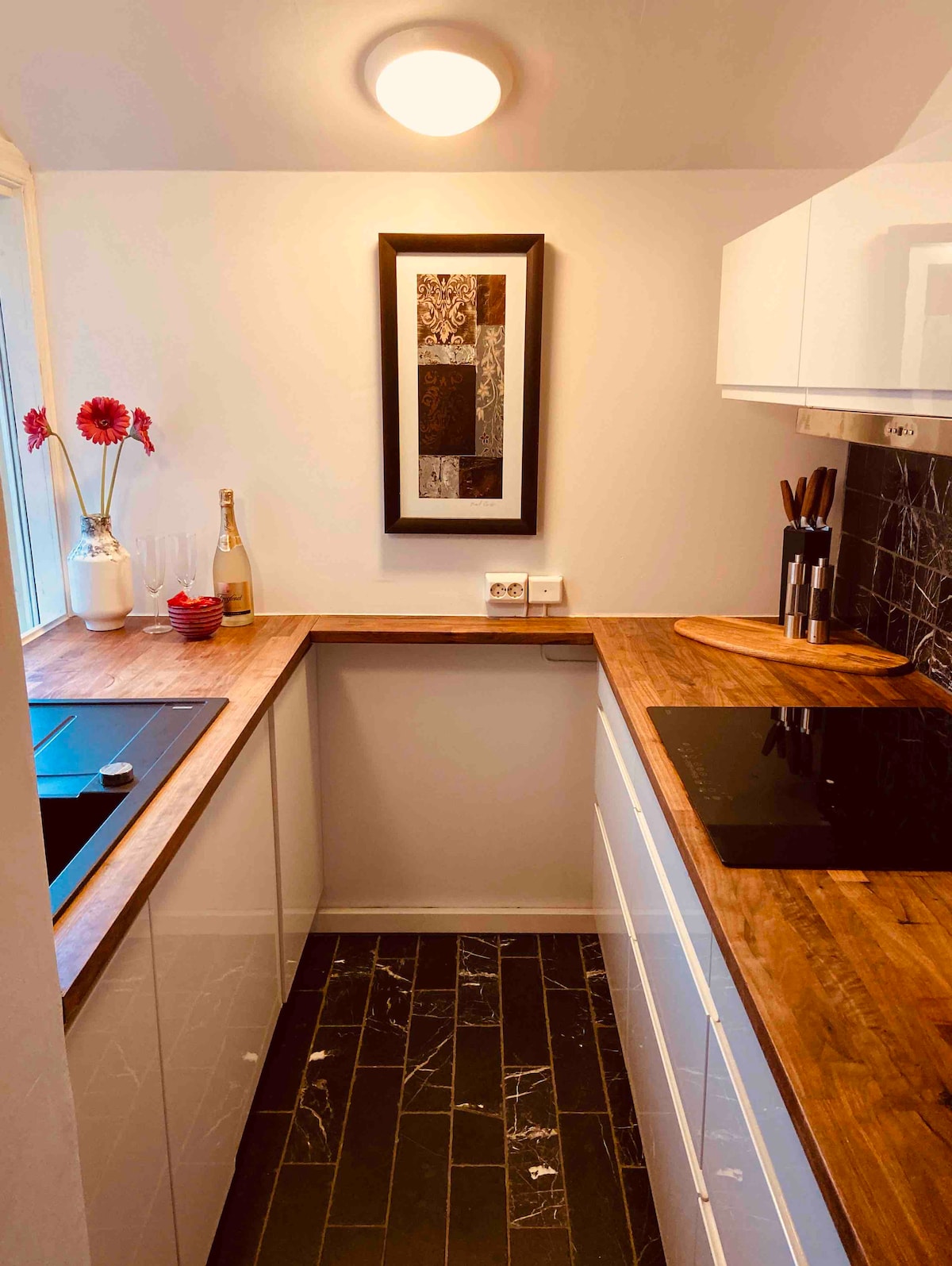 Acogedor apartamento que fue totalmente reformado en 2022. Hay aparcamiento gratuito justo fuera del apartamento con cita previa. El apartamento está equipado con internet de fibra y Apple TV en la sala. Aquí también hay un sofá cama. El dormitorio tiene una cama grande de matrimonio. La vista desde la habitación es directamente al jardín y a la bonita vista. La ropa de cama y las toallas limpias estarán listas en el momento del registro 😴 Lista de comprobación: ¡retira las sábanas antes de irte!