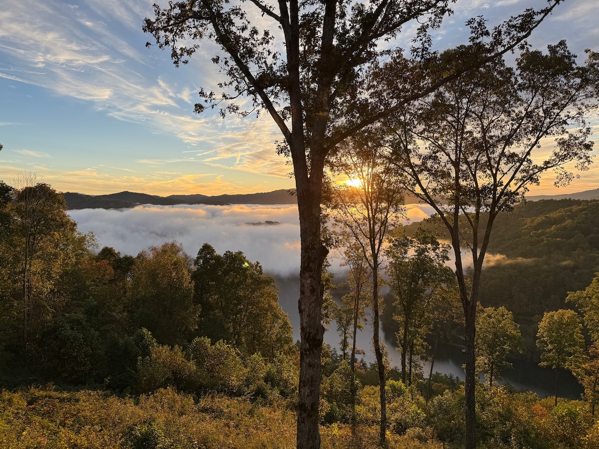 ¡Nuevo anuncio! A partir del 14 de abril de 2023, ¡el lago está lleno y el muelle de la propiedad está disponible! ¡Así que puedes traer tu barco! ¡Sunrise Cove ofrece un lago que vive en las Montañas Humeantes en todo su esplendor! Ubicado en el prístino lago Fontana para tus aventuras de pesca, paseo en bote y natación. No querrás dejar este ambiente sereno, pero si lo haces, estás a solo 20 minutos de Bryson City, con tiendas, restaurantes, rafting en aguas blancas y mucho más.