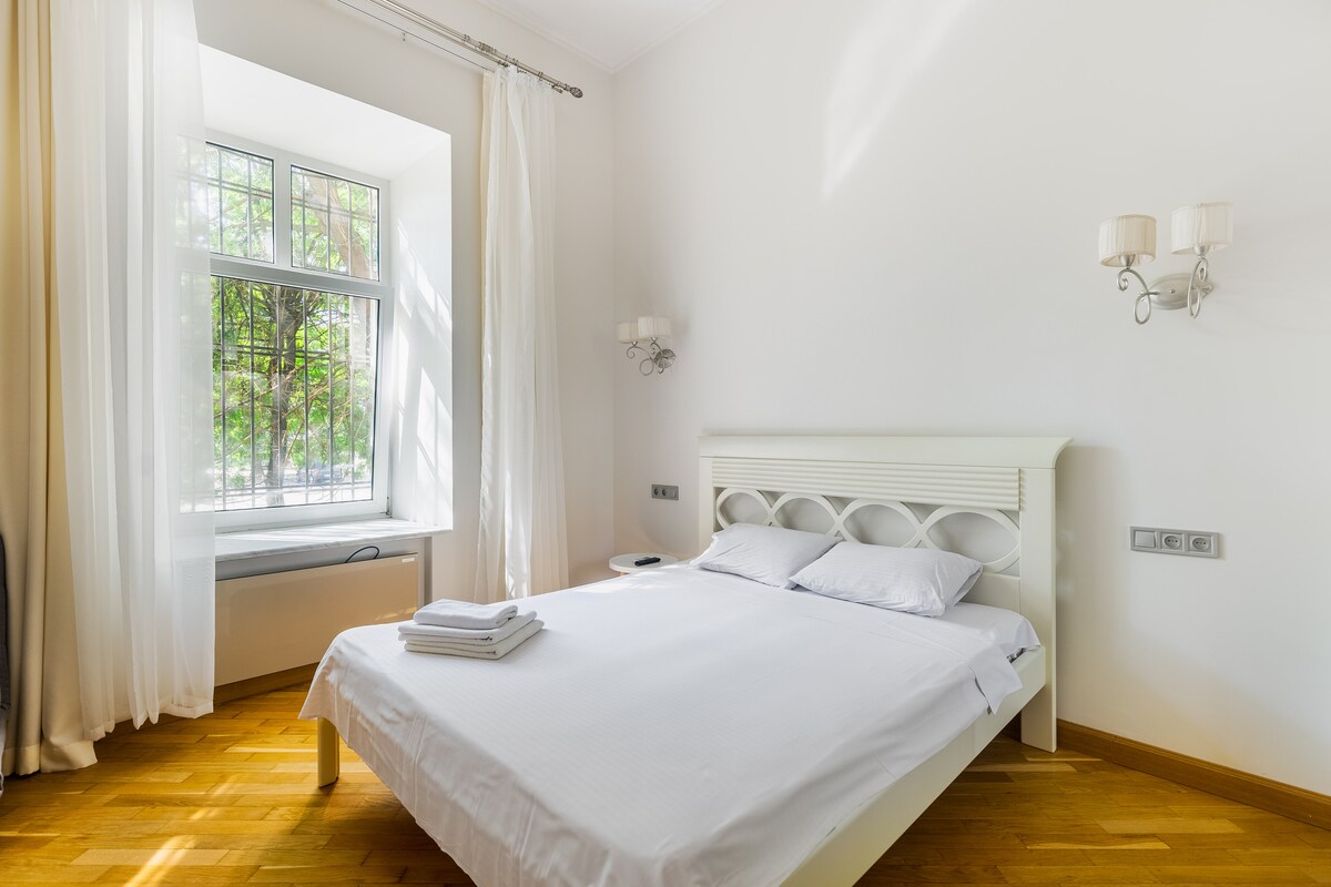Descansa y relájate en un lugar acogedor y con estilo. El apartamento está en un barrio histórico tranquilo. Tiene una ubicación conveniente: a 10 minutos a pie de las playas «Lanzheron», senderos de salud, delfinario, a 5 minutos del parque recreativo Shevchenko y atracciones, a Deribasovskaya a 25 minutos a pie a través del parque y el centro histórico.