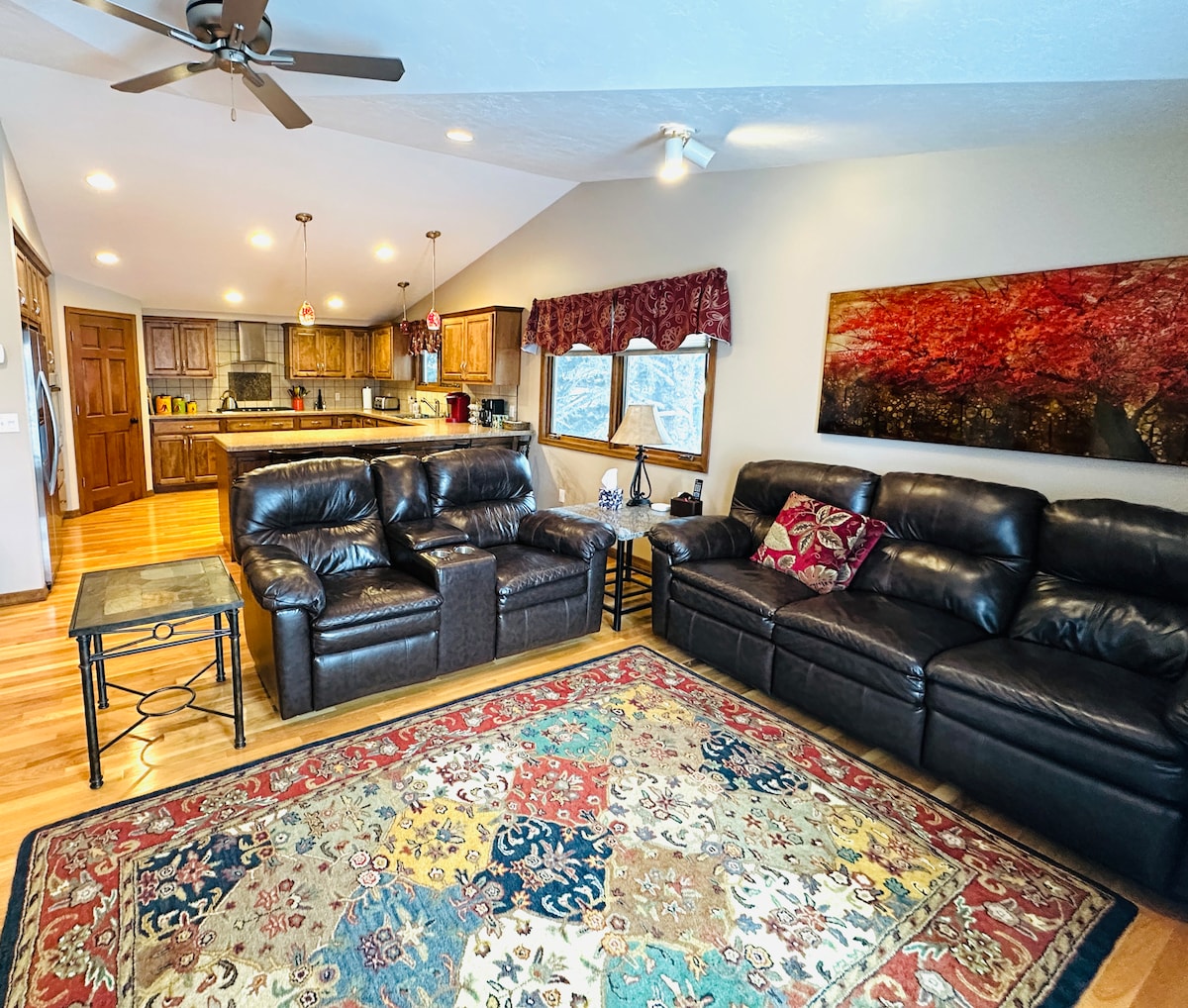 Acogedor apartamento de invitados de un dormitorio ubicado en nuestro espacioso rancho de 10 acres con vistas espectaculares y privacidad, pero a solo 5 minutos de la ciudad. El apartamento de concepto abierto cuenta con una cocina completa, una amplia sala de estar y un comedor. Tanto la cama como el sofá cama tienen colchones de espuma viscoelástica. Combinación de ducha y bañera práctica para los niños. Lavadora y secadora gratuitas. Acogedora estufa de leña. Smart TV y wifi. Colchón hinchable tamaño queen adicional también disponible. Apto para niños con parque infantil y juguetes. NO SE ADMITEN MASCOTAS. ¡Casa de huéspedes muy luminosa y agradable!
