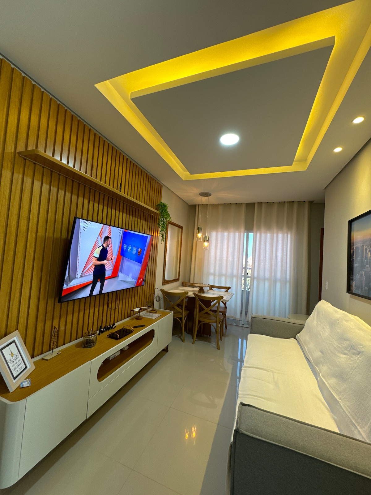 Este apartamento es muy acogedor y está decorado con delicadeza. Tiene capacidad para hasta 5 personas (incluidos niños). Hay 2 dormitorios y 2 baños, cama doble, TV y aire acondicionado en los 2 dormitorios. Cocina completa con cafetera, máquina de café DELTA, sandwichera, licuadora, microondas, airfryer, ollas, cubiertos, vasos, platos, etc. Amplio balcón, con una cama individual, hamaca, ventilador de pie, mosquitera y cortina de vidrio. Sala de estar con TV y sofá cama.