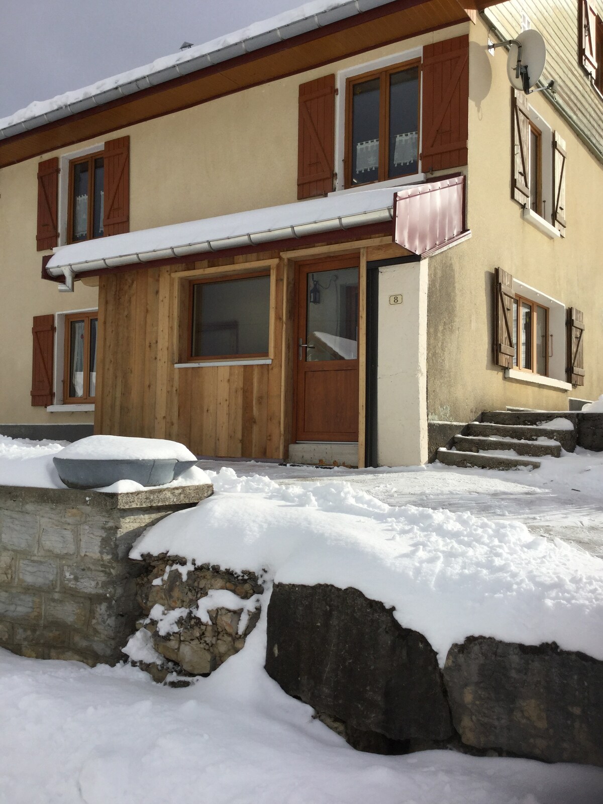 Apartamento adyacente a la casa familiar, situado en el Parque Regional Natural del Alto Jura, en el corazón del pueblo de Longevilles Mont d'Or, al comienzo de las rutas de senderismo, ciclismo de montaña y esquí de fondo. Consta de una sala de estar con cocina equipada, una sala de estar, una zona de noche, una cama (160x200), un baño, ducha y aseo. Altillo con zona de lectura. Zona exterior privada. Acceso a todos los sitios y comodidades Panadería a 2 km Supermercado 5 km Estación Métabief 4 km Frontera Suiza (Vallorbe) 15 km.