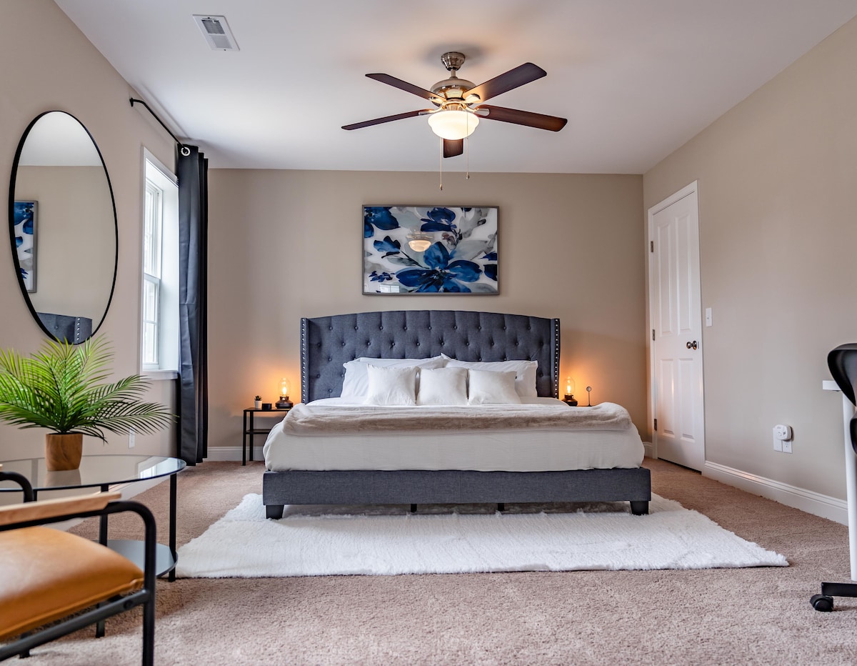 Una moderna casa recién renovada con toques personales en un barrio tranquilo ubicado en Fayetteville. Es ideal para salir a caminar o a correr. A unos 5 minutos de Ft Bragg, a 10 minutos de Raeford, a 25 minutos de la I95 y a 25 minutos del aeropuerto. La casa tiene tres dormitorios, todos con camas tamaño queen. La cocina está totalmente equipada para las personas que quieran cocinar. La sala de estar está equipada con un televisor y un roku. Hay lavadora y secadora disponibles para su uso en el garaje.