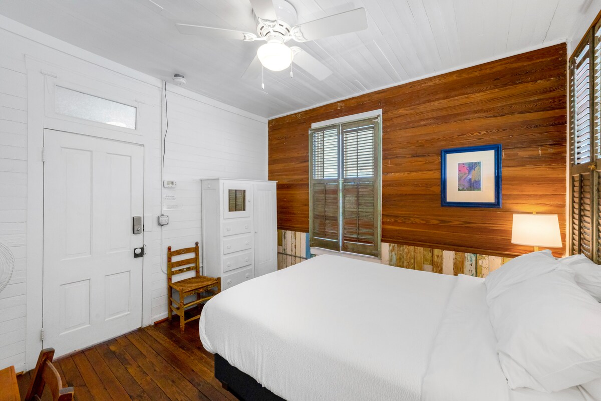 Sunshine's Sojourn at the Bowery Inn combina encanto histórico con comodidad moderna en el centro de Apalachicola. Contempla las puestas de sol doradas desde tu habitación, descansa tranquilamente en una lujosa cama tamaño king o en un acogedor sofá cama doble y mantente conectado con un escritorio completo y un wifi fiable. La cocina compartida es ideal para comidas ligeras o café por la mañana, y el amplio porche invita a largos y perezosos momentos. Sal a explorar boutiques, aclamados restaurantes de mariscos, mercados de temporada y vistas al río a pocos minutos.