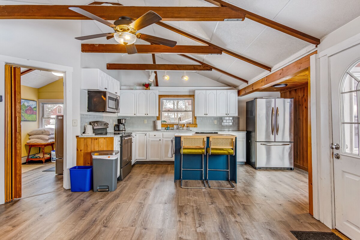 La casa está escondida en la parte posterior de nuestra granja lechera de trabajo de 300 acres y ofrece impresionantes vistas al monte Mansfield. Estamos ubicados entre dos de las mejores estaciones de esquí de Vermont, Jay Peak y Smuggler Notch. Ven a vivir una aventura invernal repleta de esquí alpino, equitación o excursiones por el país. Alójese en las cervecerías, destilerías y restaurantes locales. O simplemente relájate en la granja, acércate a la estufa de leña y prepara una deliciosa comida criada en la granja para cenar. ¡Los perros de buen comportamiento son bienvenidos en cualquier momento!