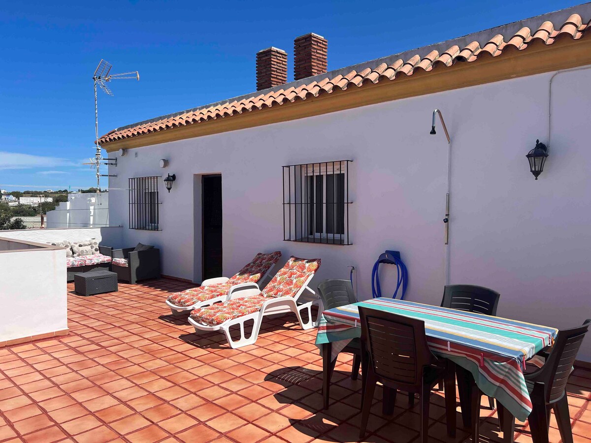 Bienvenido a casa Malakita, una casa típica de pueblo con 2 pisos, totalmente reformada y cada uno con su azotea privada, muy cómoda y acogedora, ubicada en una calle peatonal en el centro de Conil y muy cerca de la playa. Un lugar ideal para disfrutar de la tranquilidad, en una distancia de pocos minutos andando hay playa, tiendas, restaurantes y bares. El apartamento se distribuye en primera planta, en la segunda se encuentra una azotea privada con una estupenda vista a la playa.