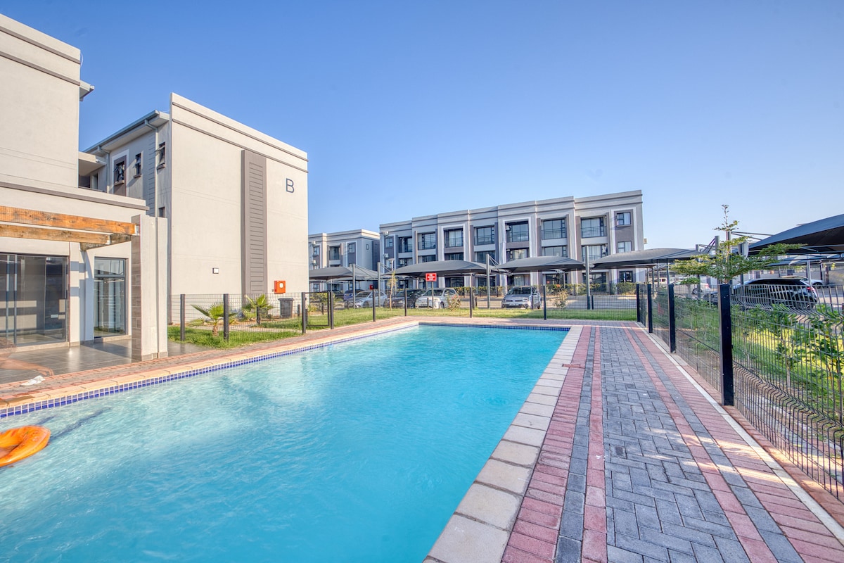Tu escapada privada en Gaborone. Relájate en una casa de 3 dormitorios totalmente climatizada con piscina, zona de estar al aire libre, aparcamiento privado gratuito, área de barbacoa y wifi Starlink de alta velocidad. Perfecto para relajarte, trabajar o recibir invitados. Seguro, amplio y a pocos minutos del distrito financiero, del centro comercial Airport Junction y del aeropuerto (traslados disponibles). Una estancia cómoda y sin complicaciones en la que puedes confiar.