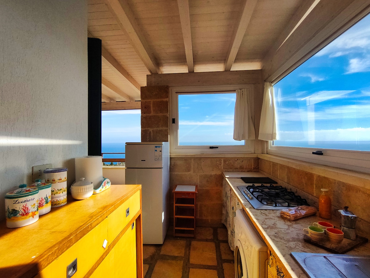 Villa en piedra, con una vista impresionante del mar, caracterizada por amplias terrazas y una piscina frente al mar donde se puede admirar la costa de Salento; rodeado de un gran y cuidado jardín está conectado con los antiguos caminos de sal (caminos utilizados para transportar sal del mar al interior)excelente para los amantes del senderismo y para descubrir el matorral mediterráneo. La decoración interior es nueva, cómoda y todas las ventanas dan al mar y están equipadas con mosquiteras, WiFi