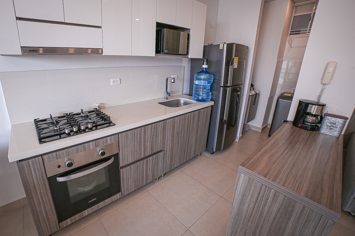 Welcome to our brand new apartment in Ambar Roca, located 5 min from the beach. Fully equipped, located in one of the most exclusive and quiet areas of Rodadero Sur, to relax or explore the magic of Santa Marta. -Air-conditioned rooms -Modern and bright spaces -Fully equipped kitchen and laundromat -Balconies with sea and mountain views -Access to swimming pool, gym, cinema room, sauna, coworking, playground -Located a few steps from supermarkets, mall, and local restaurants