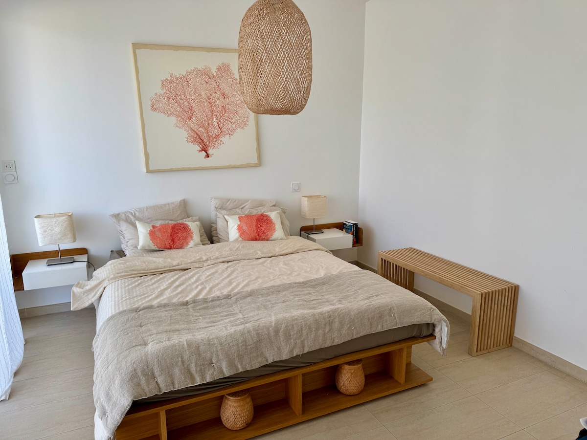 ¡Bienvenido a uno de los lugares raros de Ajaccio! A 3 minutos de las playas: magnífico apartamento tranquilo con impresionantes vistas al mar. Baño de burbujas frente al mar, sauna, mesa de masaje, ropa de cama de alta gama, balcón... ¡Bienestar asegurado! La ubicación ideal para disfrutar a pie de las animadas callejuelas, los restaurantes y el mar turquesa. Perfecto para los enamorados. 🅿️ Aparcamiento fácil Dos aparcamientos públicos en las inmediaciones: aparcamiento sencillo y sin estrés, incluso en pleno centro. ⠀